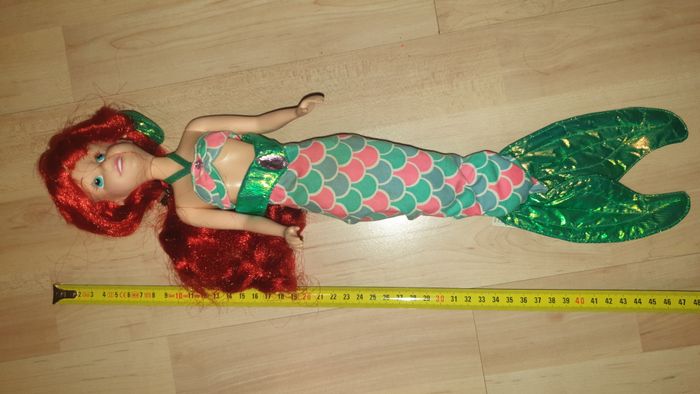 Bonjour Je propose cette grande poupée ariel, marque tyco, des années 90. Elle chantait à l'époque mais il faut probablement changer la pile. N'hésitez pas si vous avez des questions