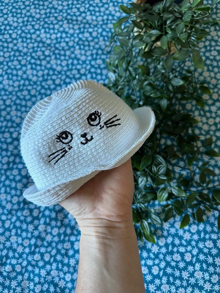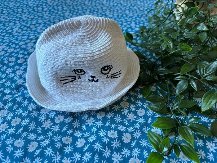 Chapeau bébé pour l’été style chapeau de paille Tête de chat Petite tache voir photo Taille : 46 cm #accessoiresbebelatilma