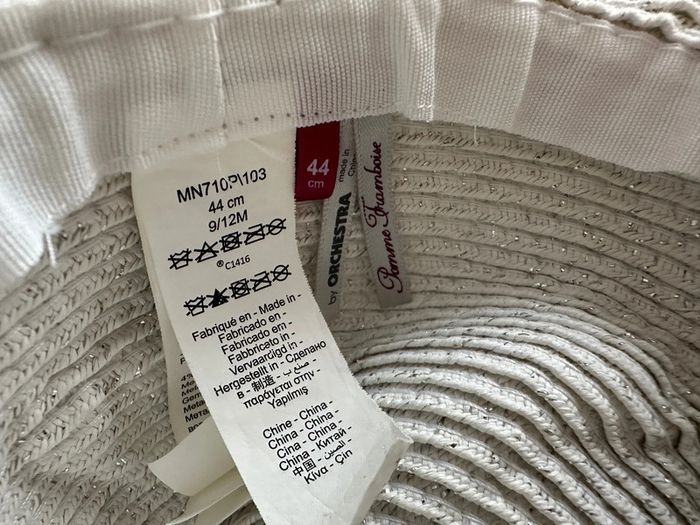 Chapeau blanc et gris argenté avec élastique Taille : 44 cm 9/12 mois Marque : orchestra #accessoireslatilma