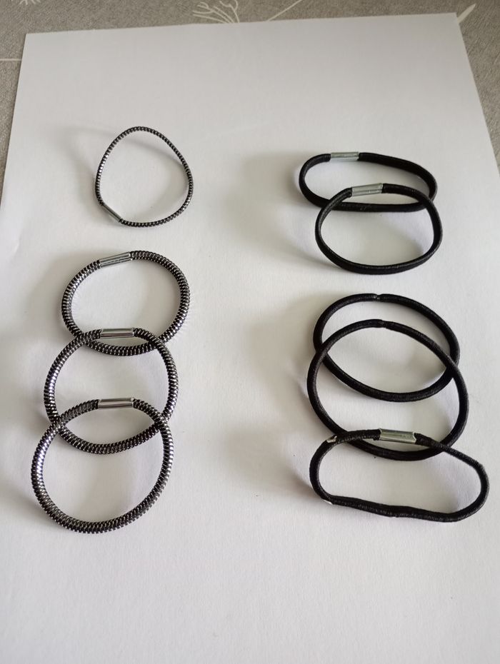 Lot élastiques cheveux noirs et argentés. Neufs