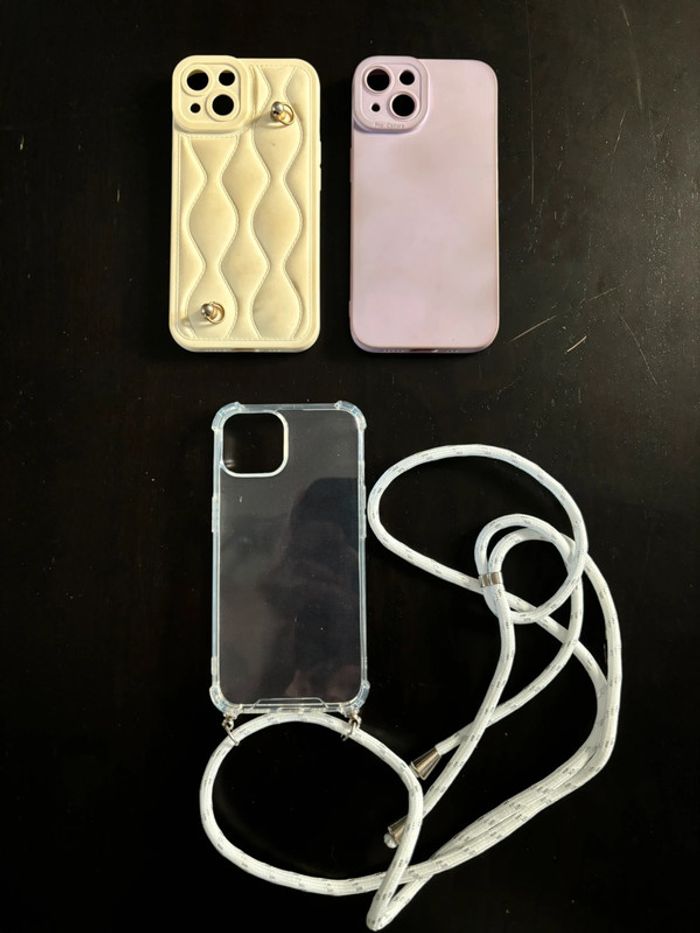 Lot de 3 coques iPhone 14 la blanche est un peu jaunis la transparente n’as jamais été utilisé et la mauve est en très bon état