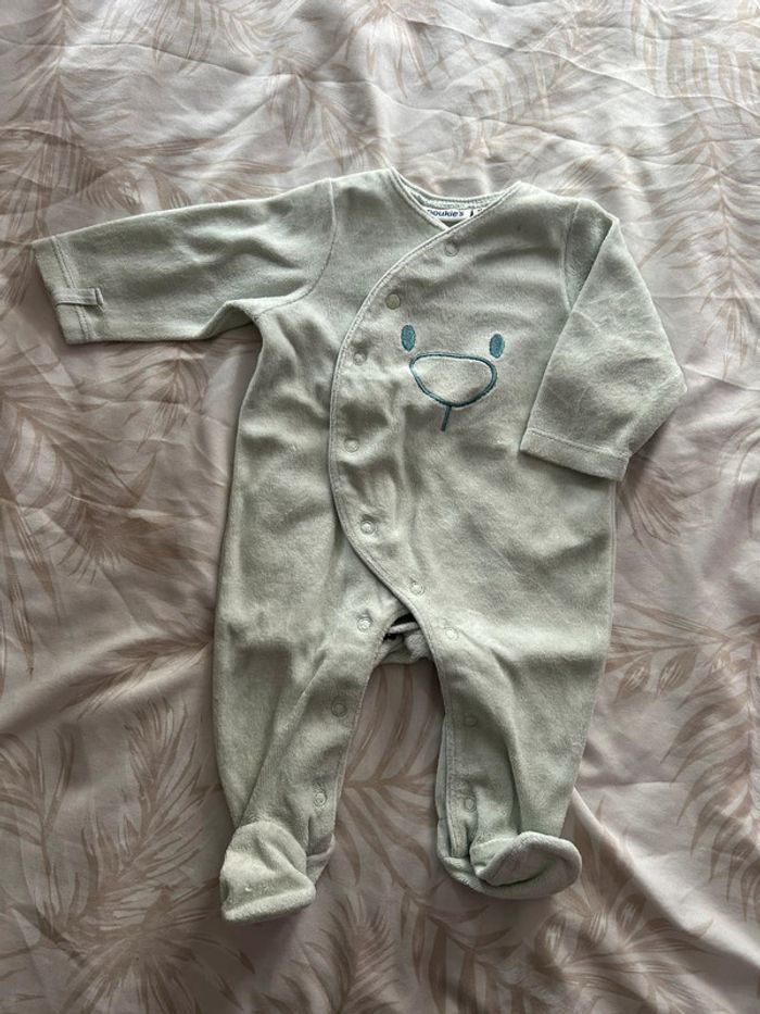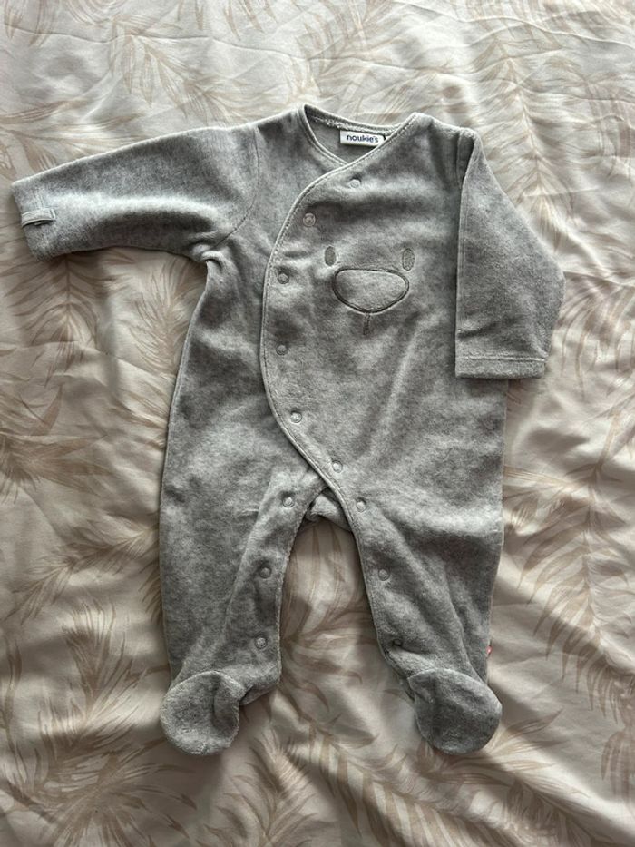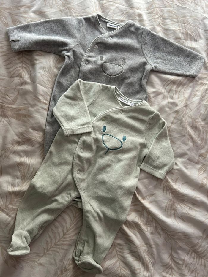 Pyjama noukies matière assez chaude en très très bon état porter 2 fois chacun. Ouverture à l’avant idéal pour nouveau né peut aussi bien convenir à un petit garçon ou petite fille.