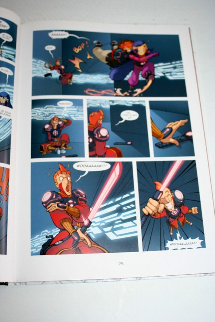 Bd Team Evolution, Laser Game Evolution, éditions LG, coins un peu frottés, 50 pages, valeur d'achat 7.95e, 570g Quand cinq inconnus n'ayant rien en commun se retrouvent propulsés à des milliers d'années lumière pour participer à un tournoi de Laser Game galactique, il est évident que rien ne se passera comme prévu! Face aux presque féroces hordes de Gniarks, nos héros devront apprendre à maitriser leurs nouveaux équipements et à travailler ensemble pour en sortir vainqueur! Laser Game, c'est eux !
