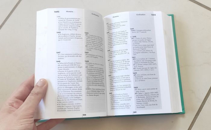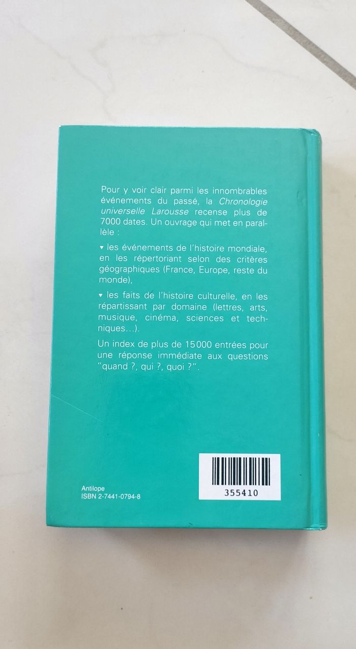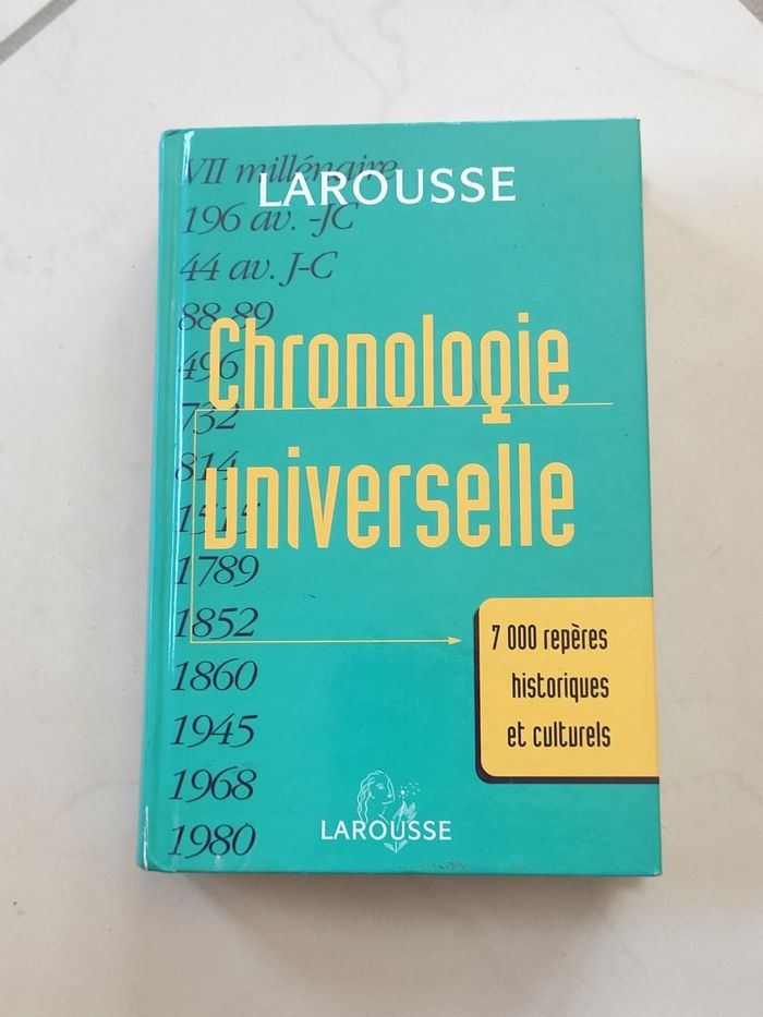 Chronologie universelle Larousse, en parfait état juste petite tâche sur le côté (voir photo). 7000 repères historiques et culturels.