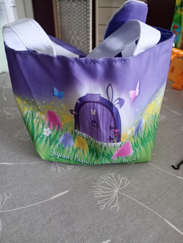 Petit sac de Pâques avec oreilles de lapins. Hauteur : 15 cm. Largeur : 13 cm. Très bon état.