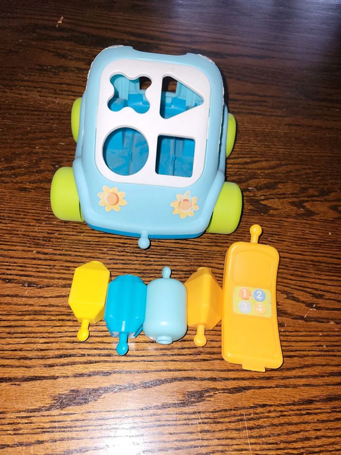 Voiture avec formes en plastique Se ferme avec le téléphone à l'arrière Bon état beaucoup utilisé