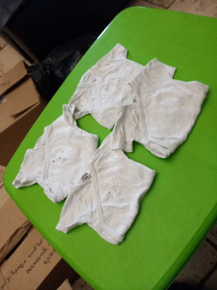 Lot 4 bodies blanc avec motif 3 mois S'attache devant