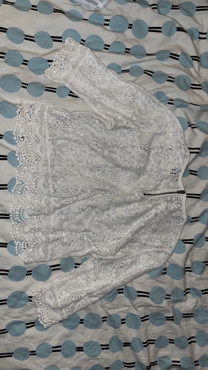 blouse d’été brodé blanc manche mi-courte très bon état