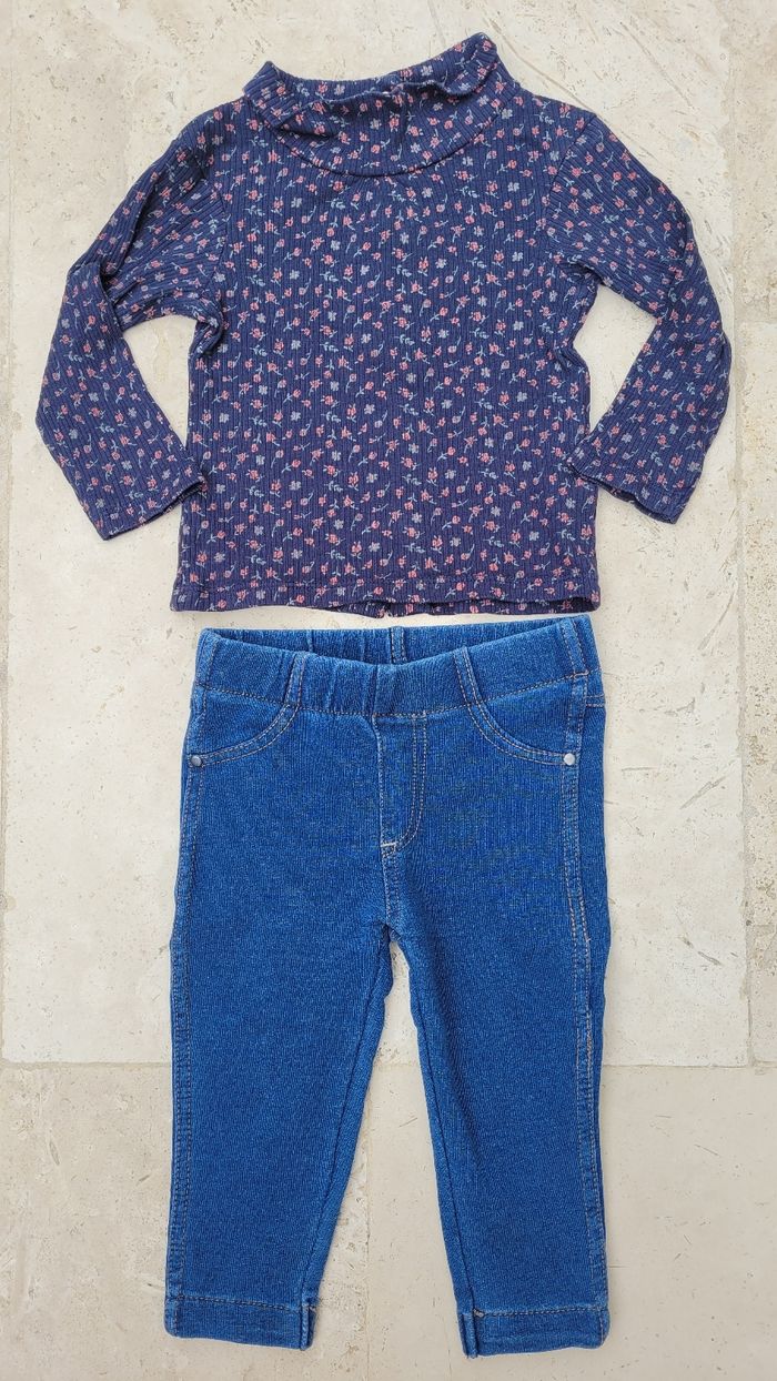 Haut ML verbaudet bleu à fleurs 🌸 et jegging zeeman. 9mois