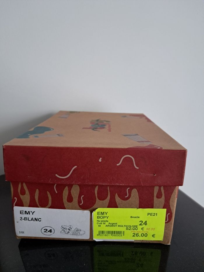 Chaussures en cuir neuves, sans défaut. En vente car ma fille est passée (trop vite) au 25. N'hésitez pas si besoin d'autres photos ou informations. Prix d'achat 26€ en promotion.