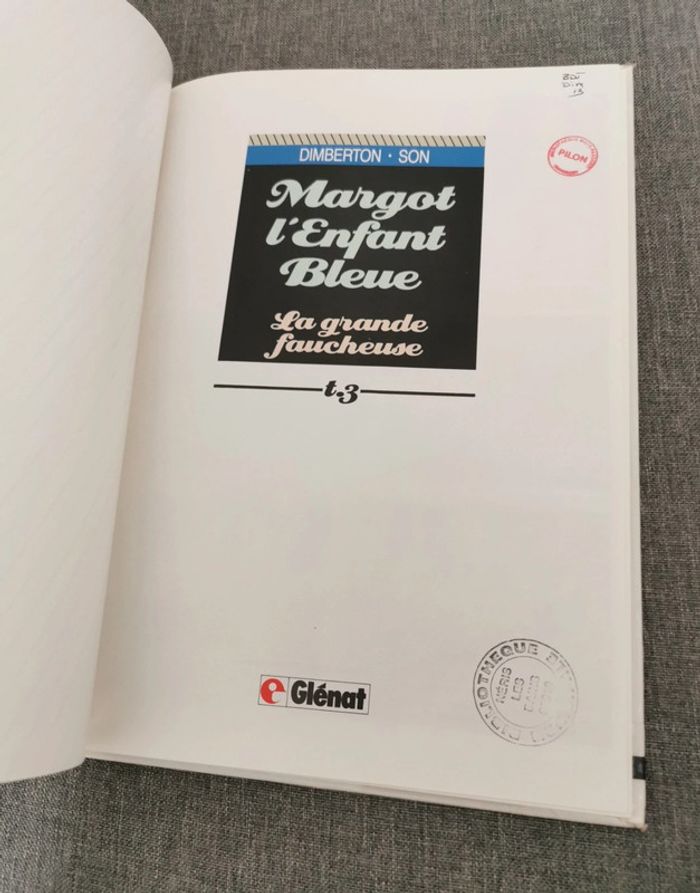 Bande dessinée française Exemplaires de bibliothèque avec étiquettes sur les couvs et tampons en page de garde La grande faucheuse Les deux Margot Une aventure du magazine vécu Bande dessinée Bédé livre