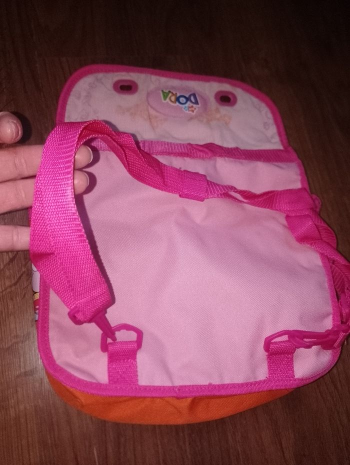Cartable, sac à dos pour petit écolier Dora cartable, sac, pour faire sa rentrée des classes comme les grands pour la rentrée en maternelle... bretelle réglable et amovible, peuvent être mise en bandoulière composé d'une grande pochette et d'une plus petite sur le devant fermeture du sac par 2 verrou facile pour ouvrir et fermer largeur 29 cm hauteur 23 cm Épaisseur 9 cm Dispo également à la vente 1 Dora pour le CP et petshop pour le primaire