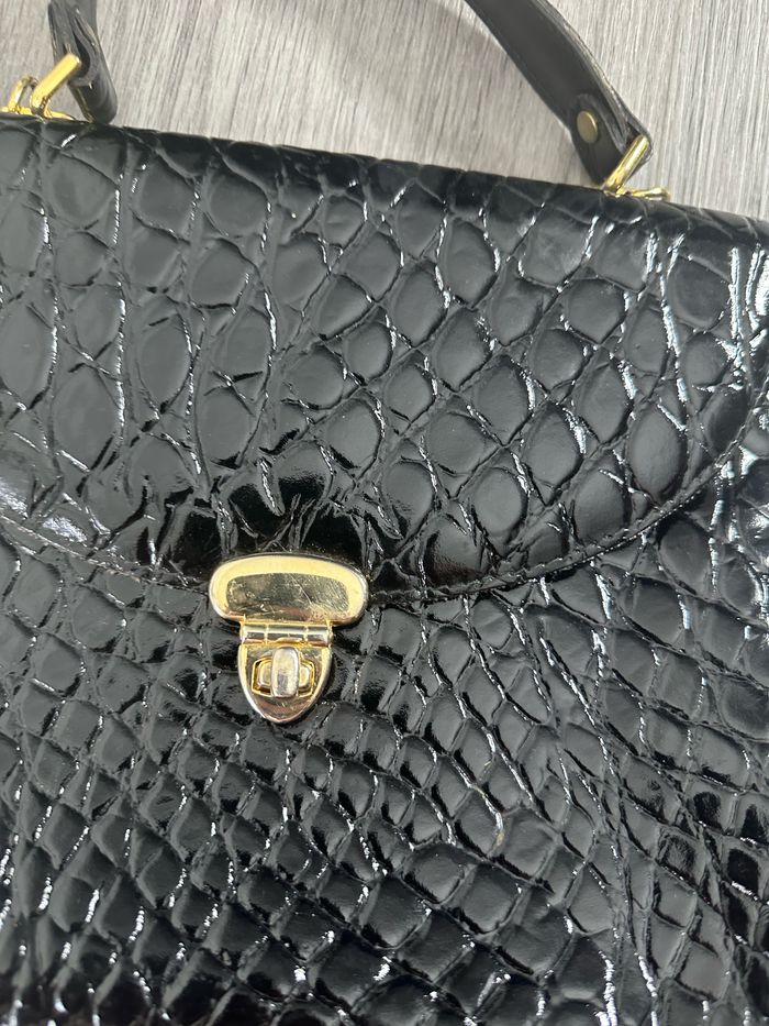 Sac à main noir en cuir vernis Vintage - photo numéro 2