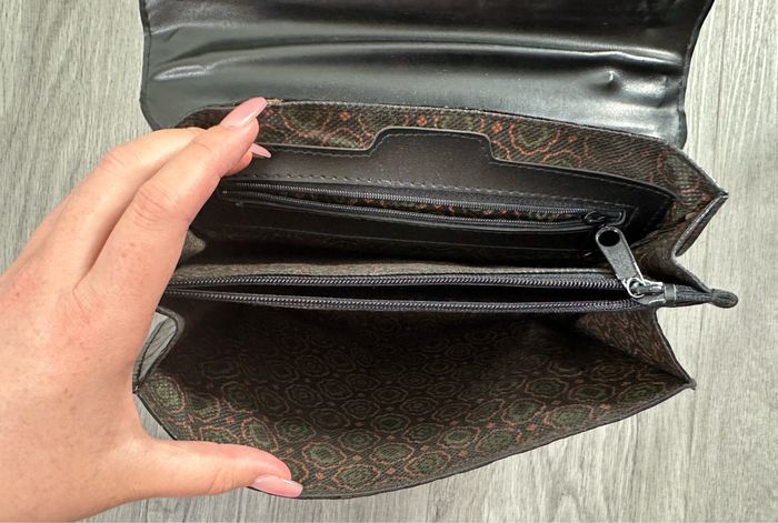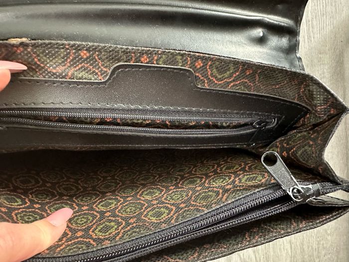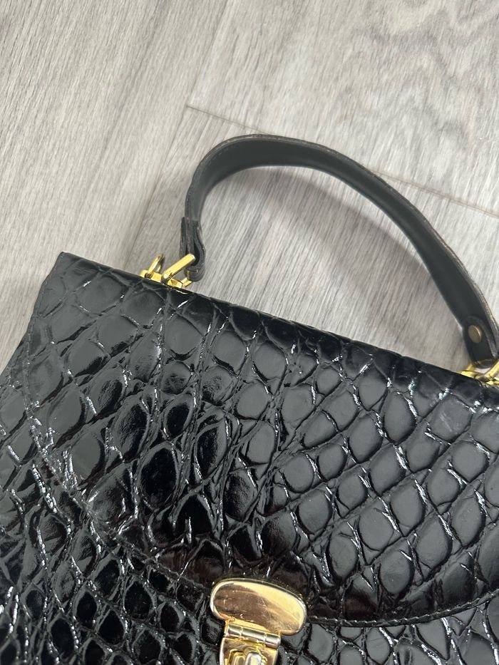 Sac à main - Excellent état - Couleur noire - Boucle dorée - Intérieure en tissus - Une anse - Cuir vernis véritable - Effet croco serpent - Vintage, années 70-80’ - Plusieurs compartiments à l’intérieur Dimensions: - 26cm de large - 20cm de haut - 9cm de profondeur