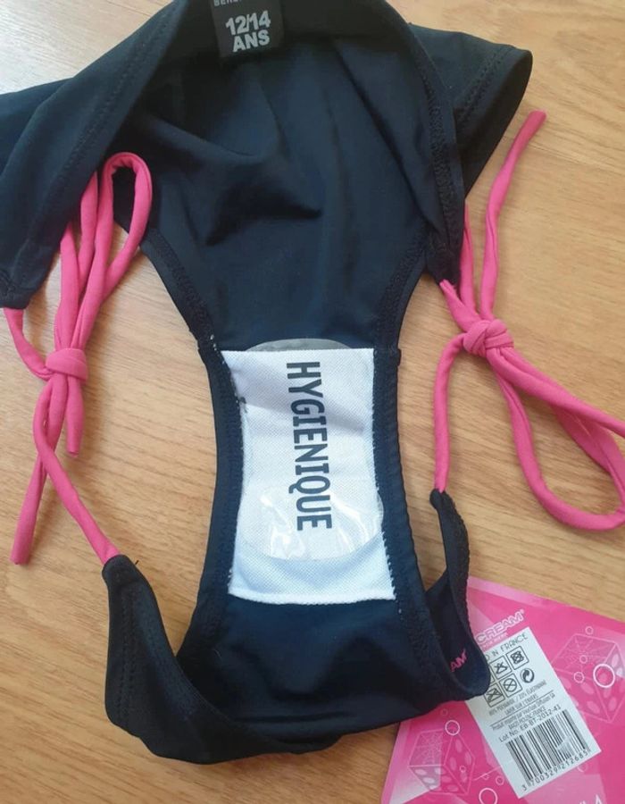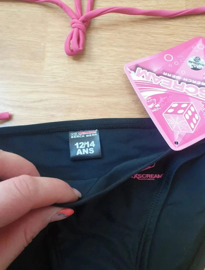 🎀 Maillot de bain noir et rose 🎀 Deux pièces 🎀 Taille 12/14 ans 🎀 Jamais porté 🎀 Neuf avec étiquette 🎀 Réductions sur lots activées