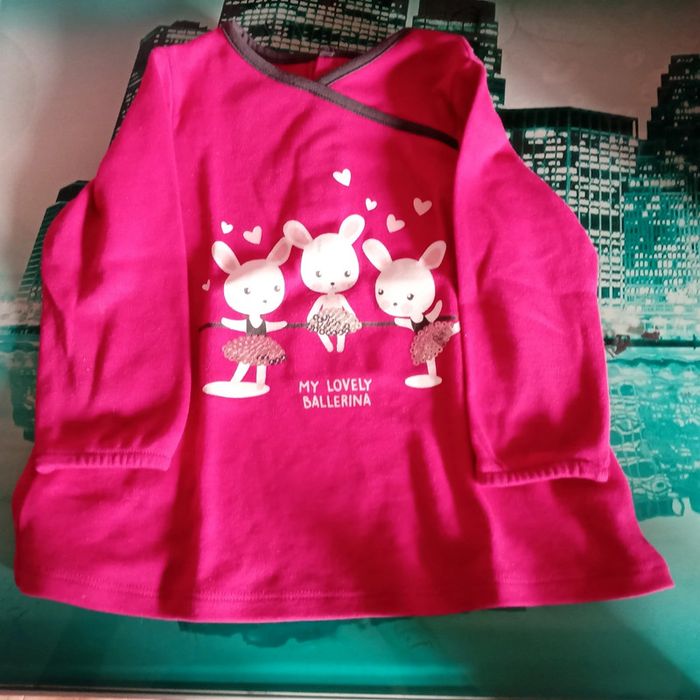 Tee-shirt manches longues rose avec dessins. Comme neuf Taille :12 mois Au choix dans mon dressing 5 articles pour 8 euros sur tous les vêtements