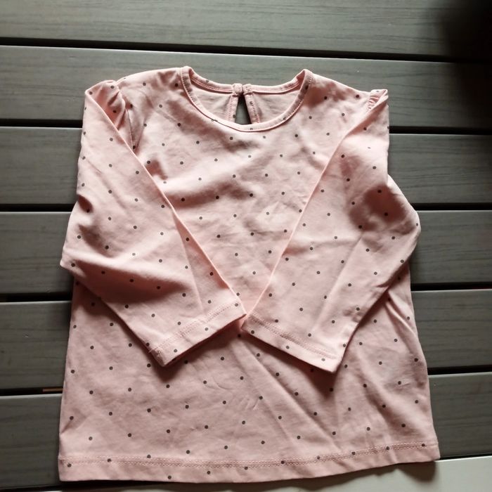 Tee-shirt manches longues rose avec motifs. Comme neuf Taille:12 mois Au choix dans mon dressing 5 articles pour 8 euros sur tous les vêtements