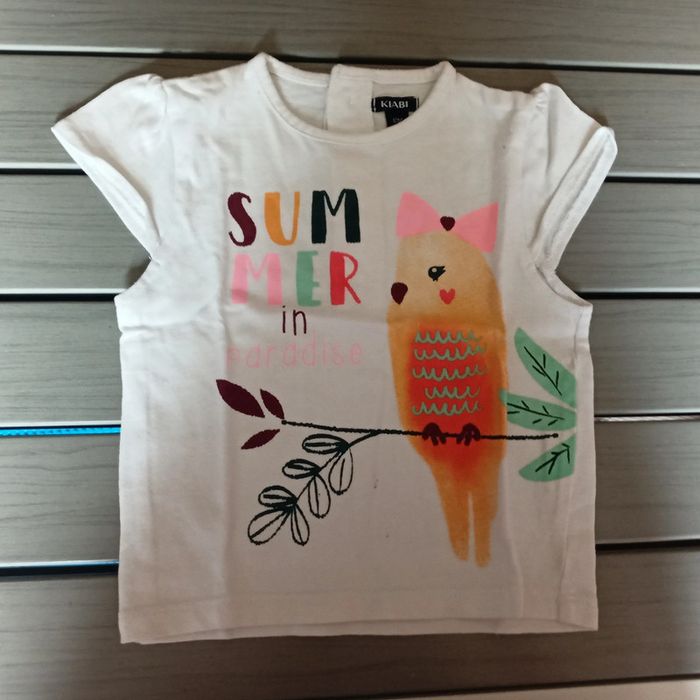 Tee-shirt manches courtes pour filles, blanc avec dessins. Comme neuf Taille :12 mois Au choix dans mon dressing 5 articles pour 8 euros sur tous les vêtements