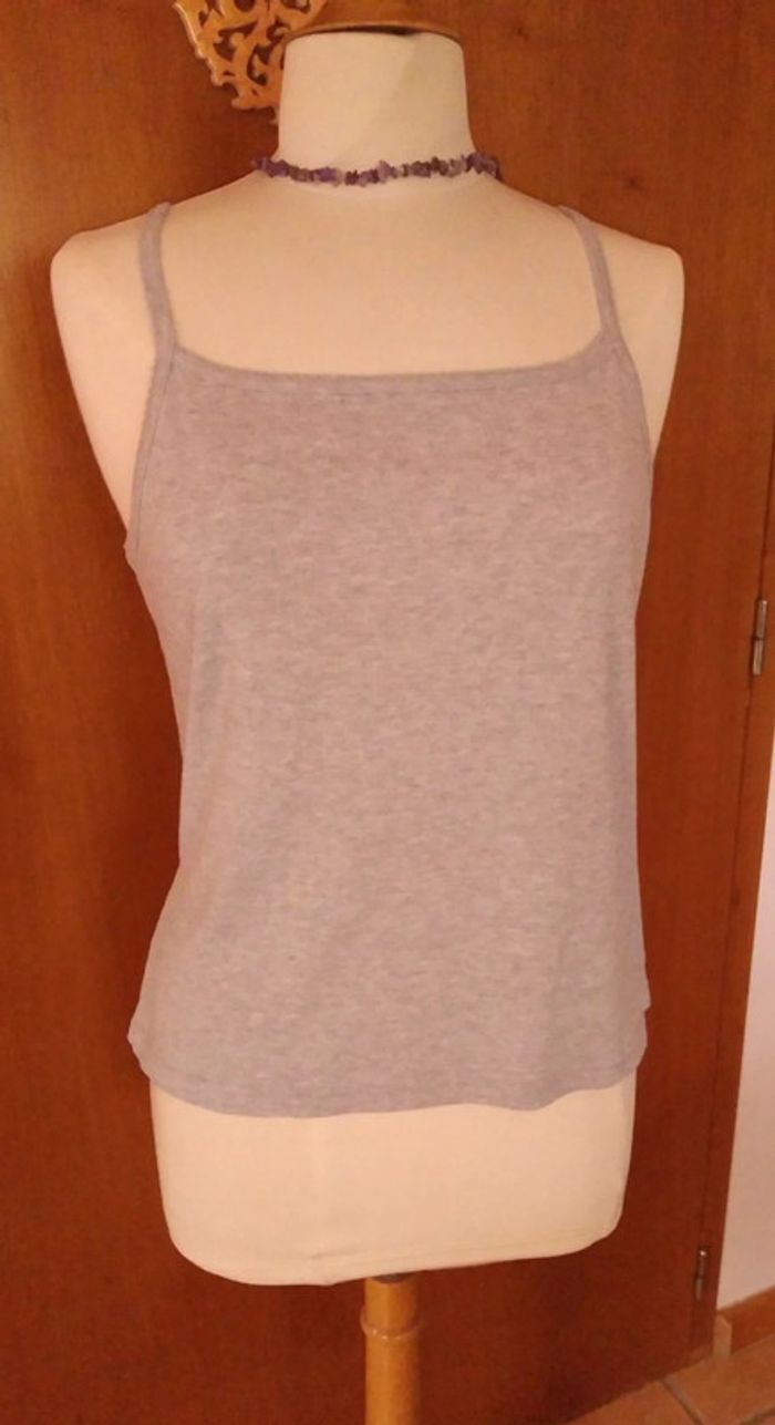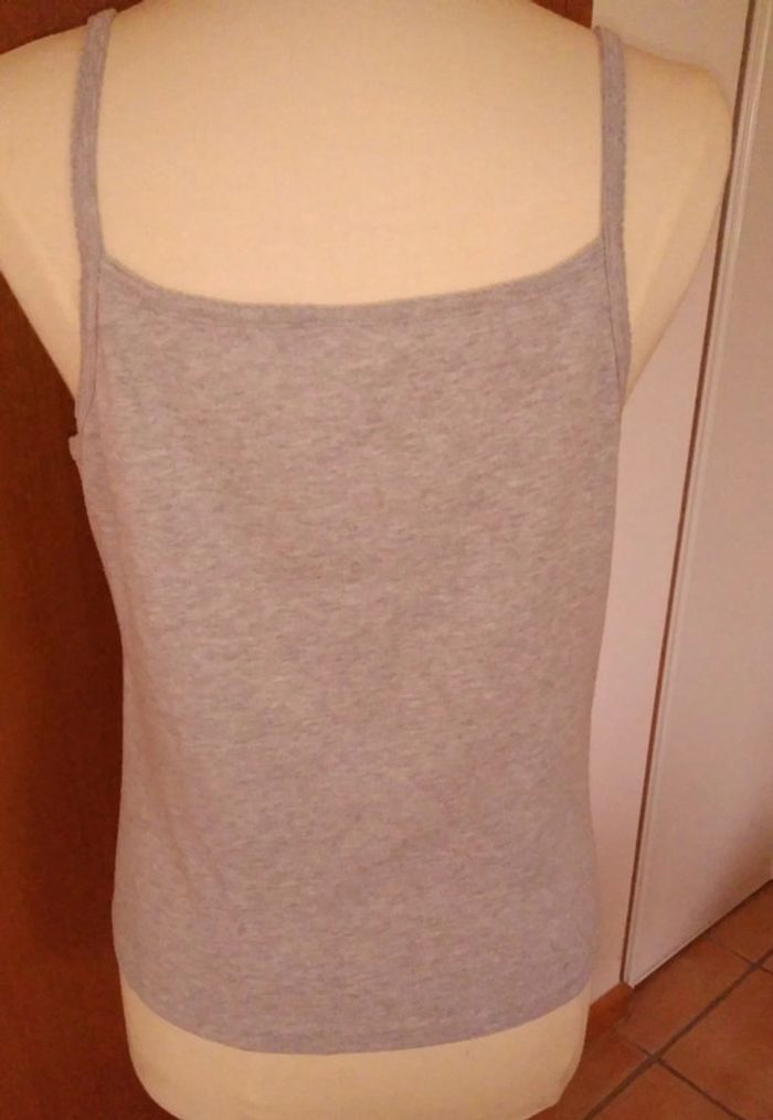 Débardeur femme gris en très bon état longueur 45 cm largeur 54 cm. Aucune tâche aucun accro aucune bouloche