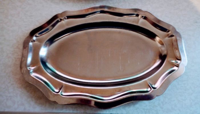 2 plateaux inox de services ovale de diamètres 30cm et 35cm - photo numéro 3