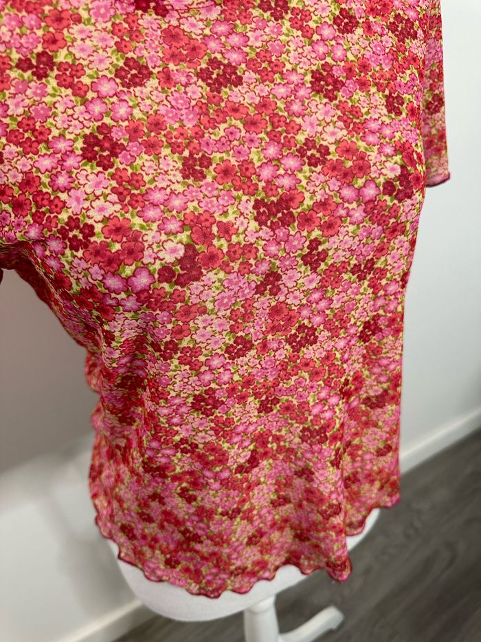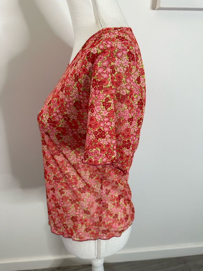 T-shirt en mesh transparent imprimés fleurs Y2K T38 M - photo numéro 5