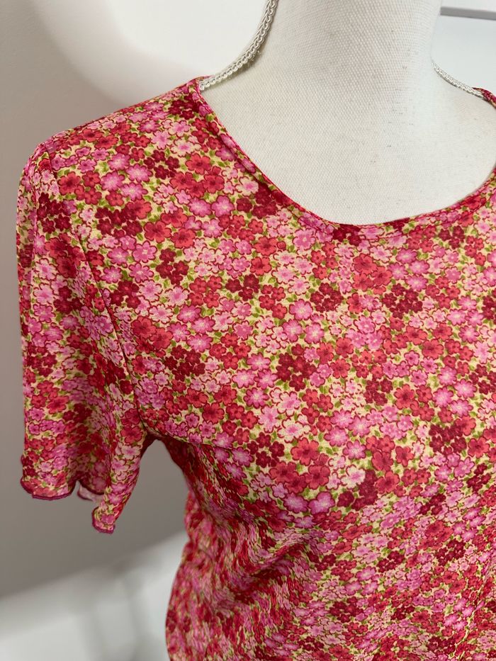 T-shirt en mesh transparent imprimés fleurs Y2K T38 M - photo numéro 3