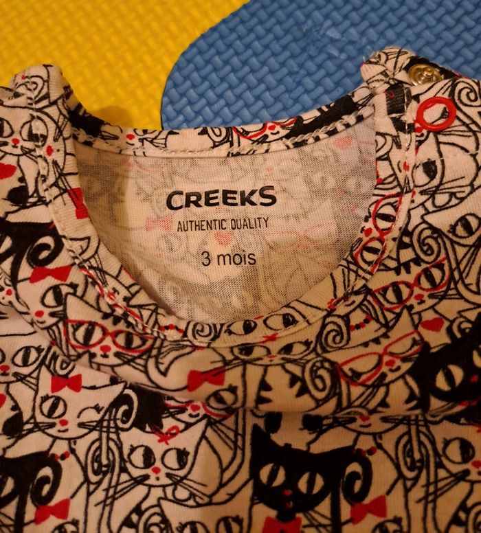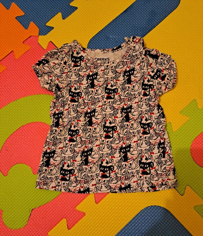 T-shirt manches courtes chat, creeks, taille 3 mois (62 cm) - photo numéro 1
