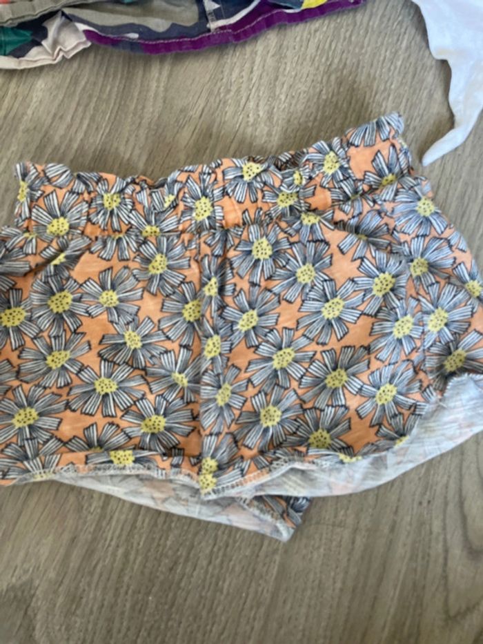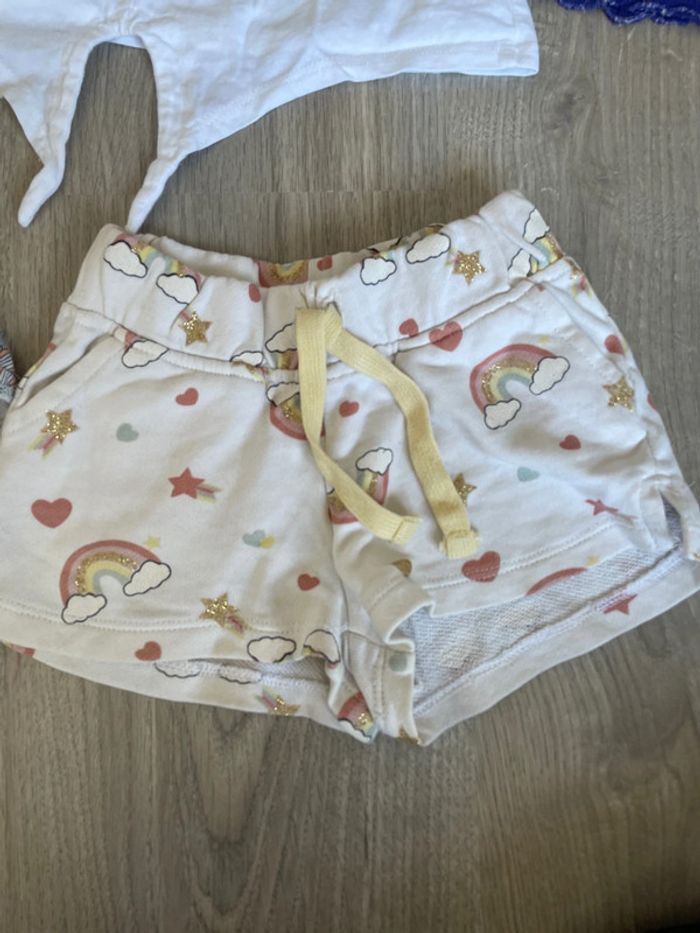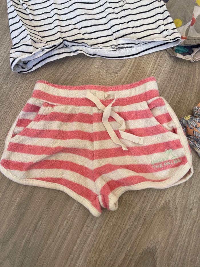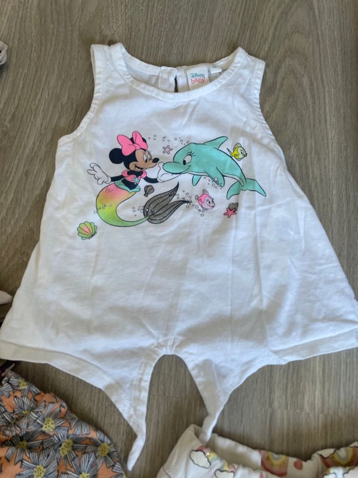 Lot comprenant 7 pièces : 1 tshirt kiabi marinière 1 short eponge kiabi rose blanc 1 short fleurs sur fond orange kiabi 1 short arc en ciel kiabi 1 haut fines bretelles okaidi #tinesha62fille3ans #tinesha62fille36mois 1 haut blanc minnie et dauphin 1 haut bleu DPAM