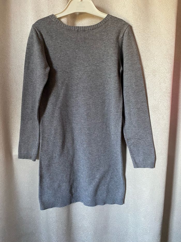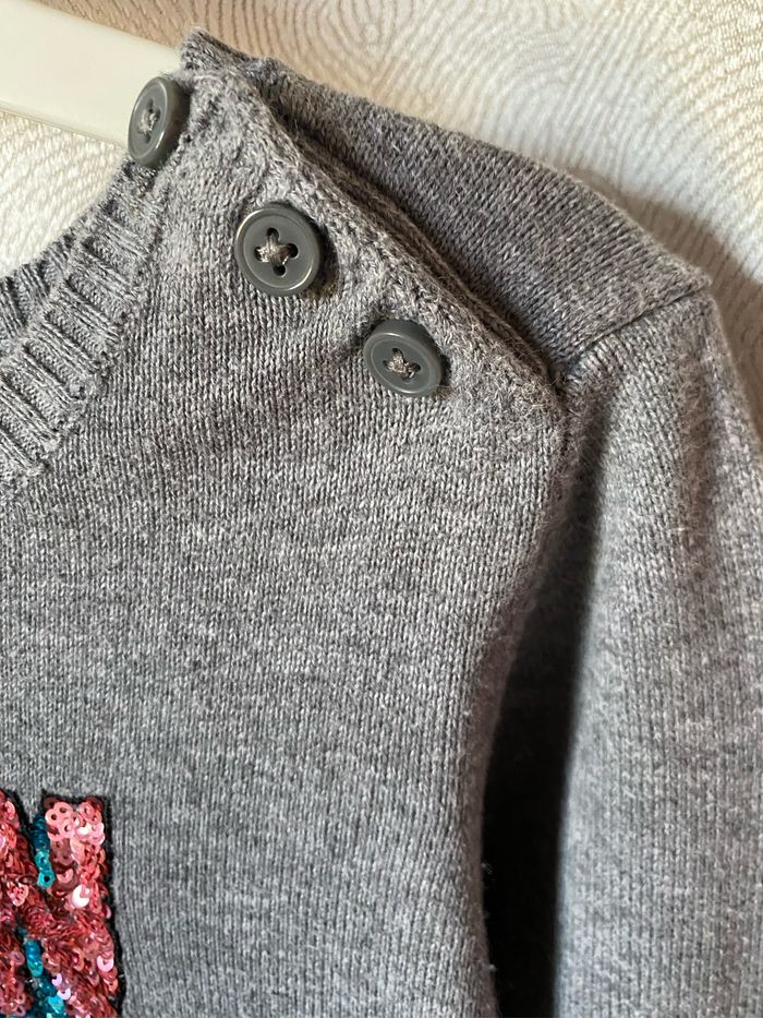 Robe tricot coton grise Fun sequins bleu blanc rose sur la poitrine Vrais boutonnage aux épaules Taille 8 ans 126-131 cm 100% coton Quelques petites taches montrées sur les photos kiabi