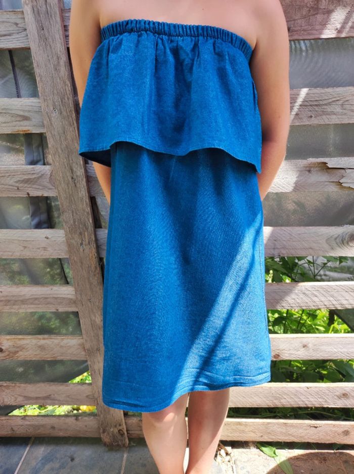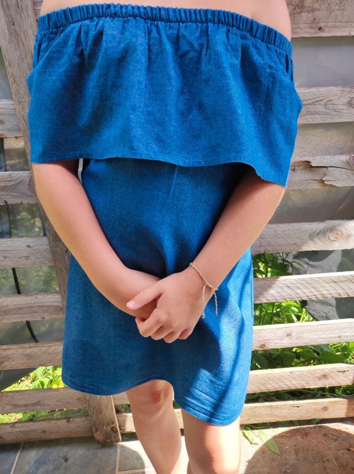 Je vends cette robe en jean fin épaules dénudées peut se porter de façons différentes, voir photos Je ne sais plus où je l'ai acheté. Très bon état Taille 14 ans fille ou 34 femme #delph110773taille14ans #delph110773tailleXS Envoi possible via Kiabi seconde main pour le bien de votre porte monnaie ! (Les frais de port sont moins chers)
