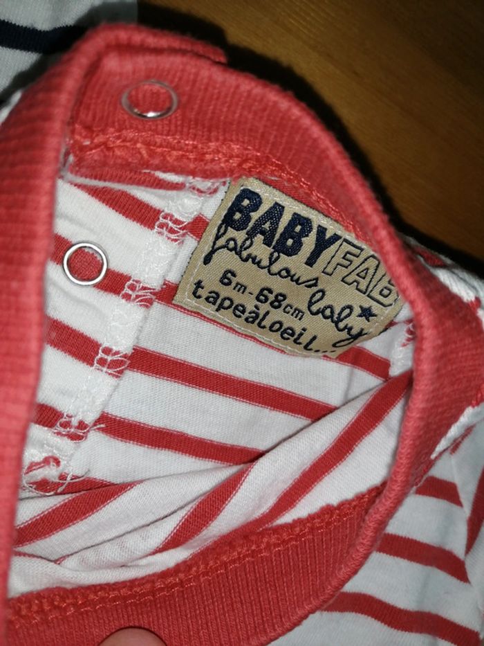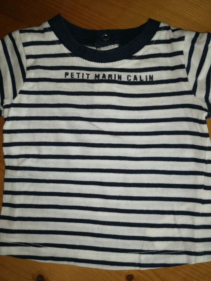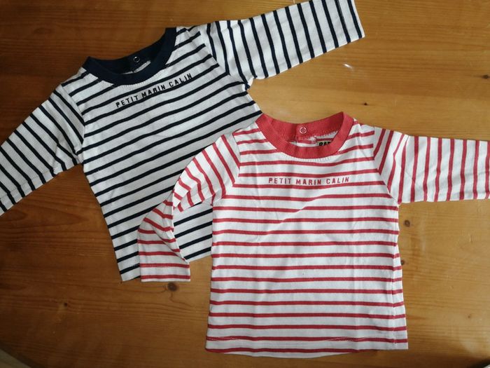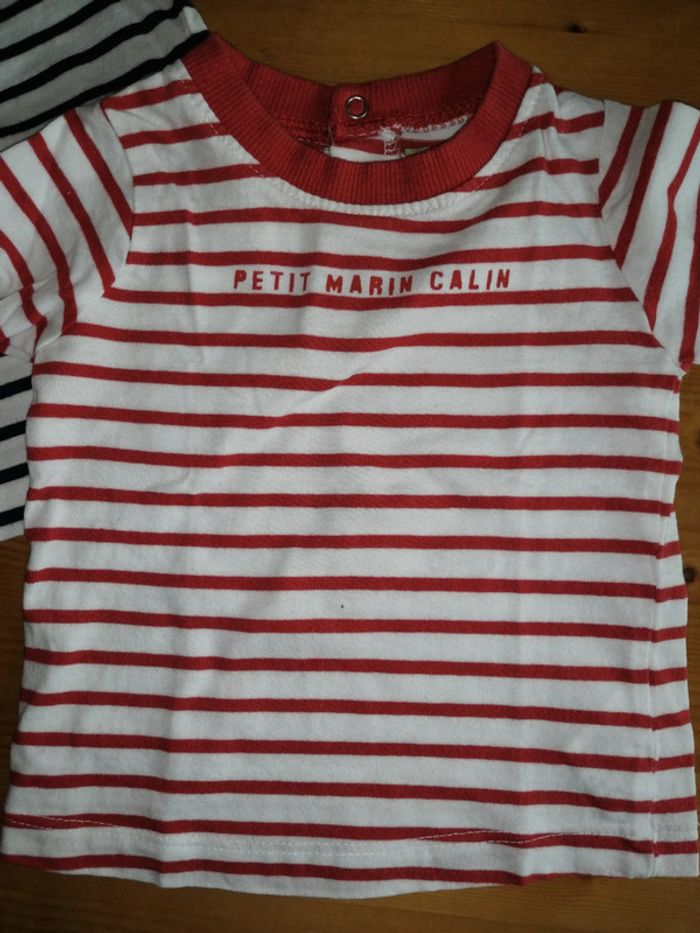 #nad_35_bb_garcon_62 Lot de 2 tee-shirt marinière avec pressions Tape à l'oeil 6 mois - 68 cm (taille petit) Très bon état