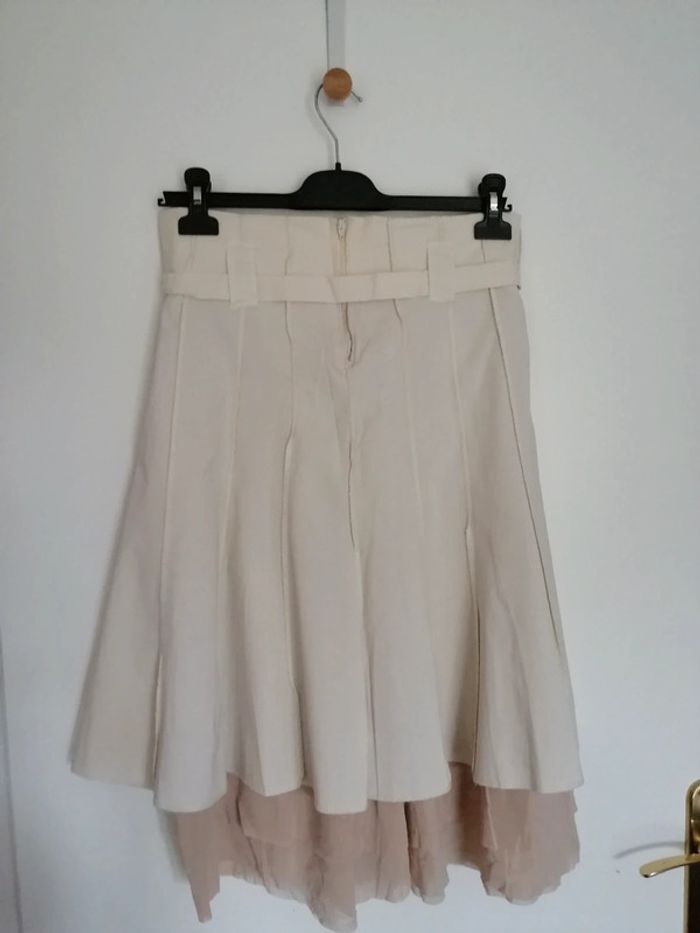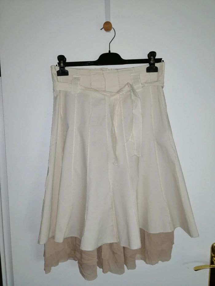 #nad_35_femme_38 Jupe avec fermeture éclaire Fabriqué en France 95% coton / 5% elasthanne ⚠️Vérifiez mesures, pas de taille indiquée Taille 38 cm Hauteur 71 cm Nuances de beige Très bon état. Petites tâches vraiment très discrètes (dernières photos)