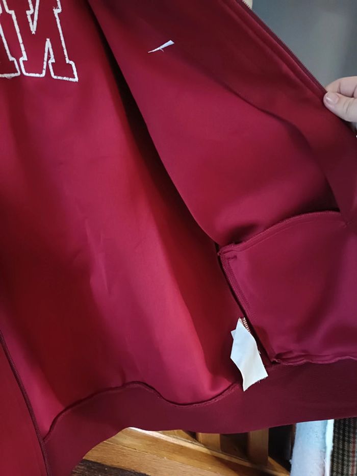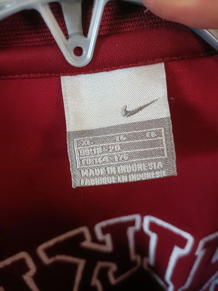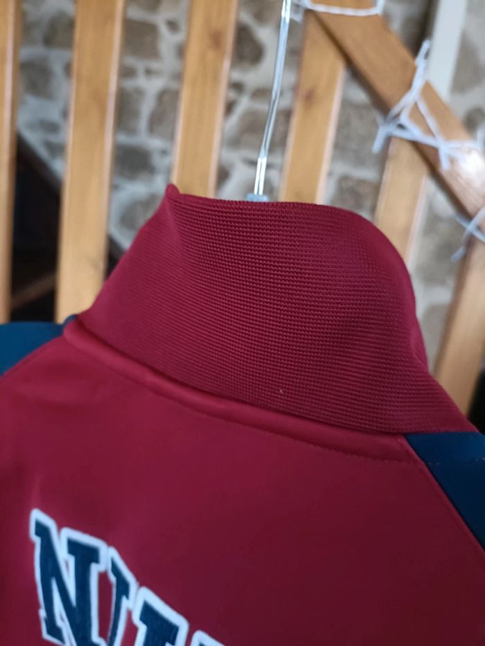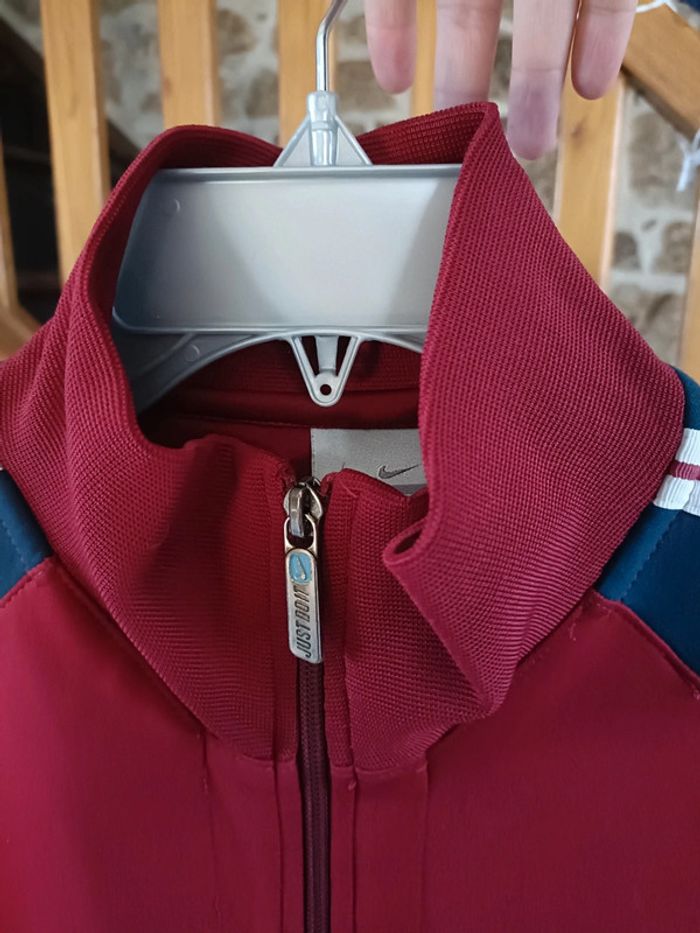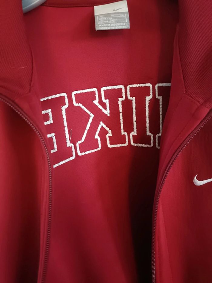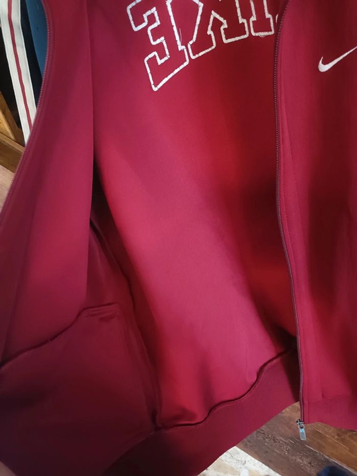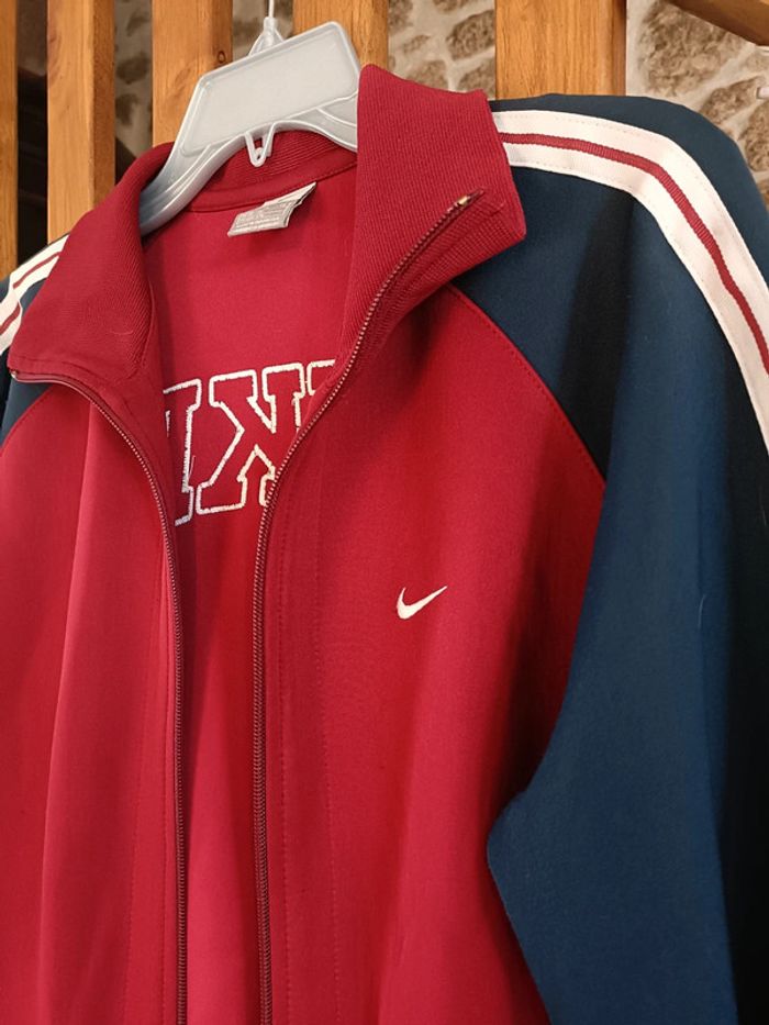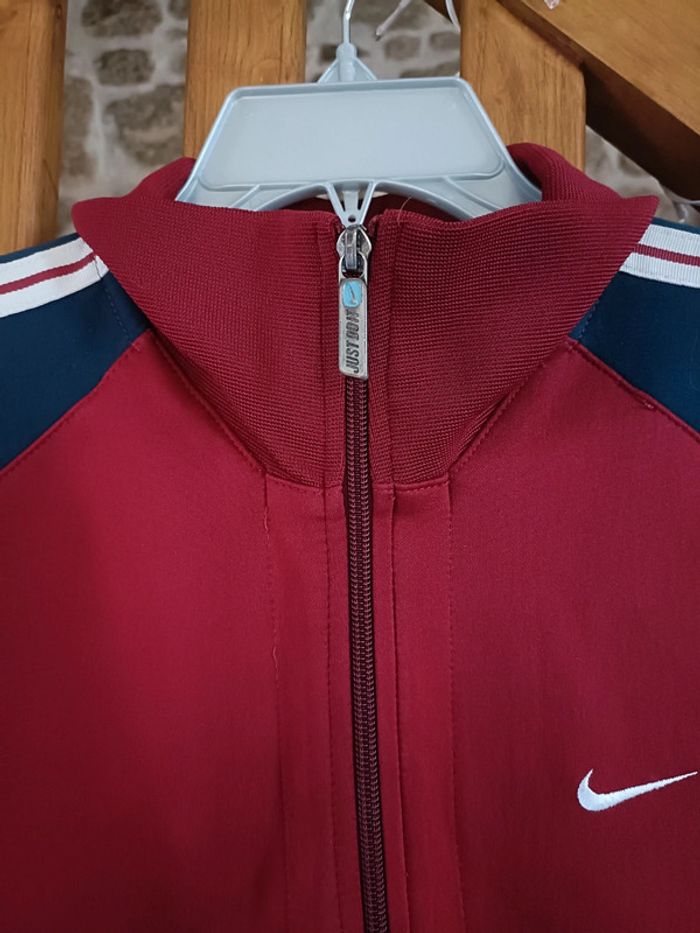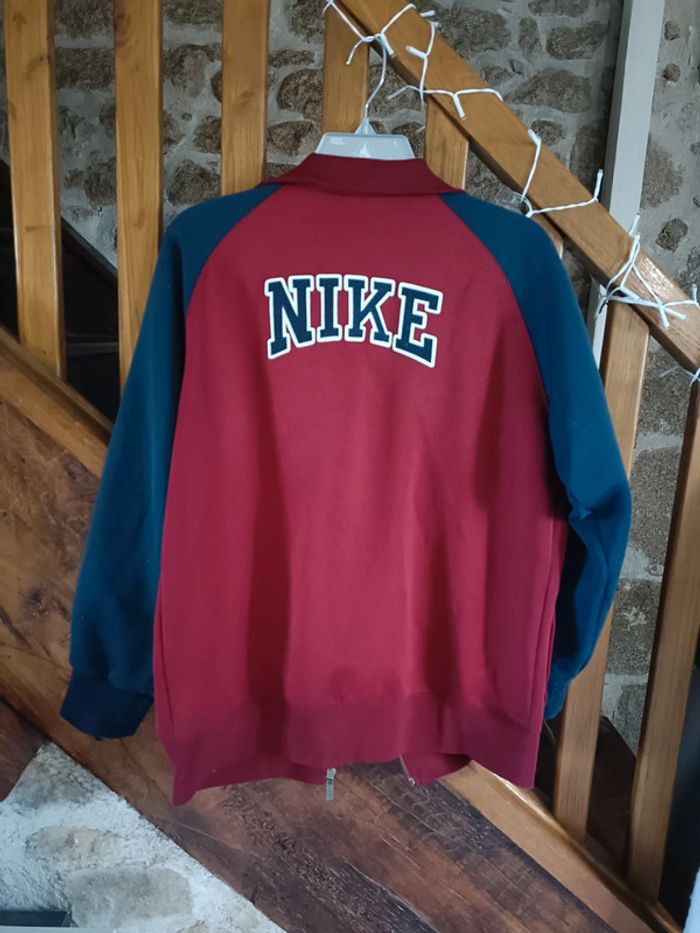 Veste vintage nike Taille : L (oversize pour femme) Bon état général : il y a des accros sur le vêtements, voir les photos, mais ça reste discret Couleurs : bordeaux et bleu marine Avec logo Nike dans le dos Fermeture éclair sur le devant ➡️ #ursullabuffayvetements #laselectionvinted
