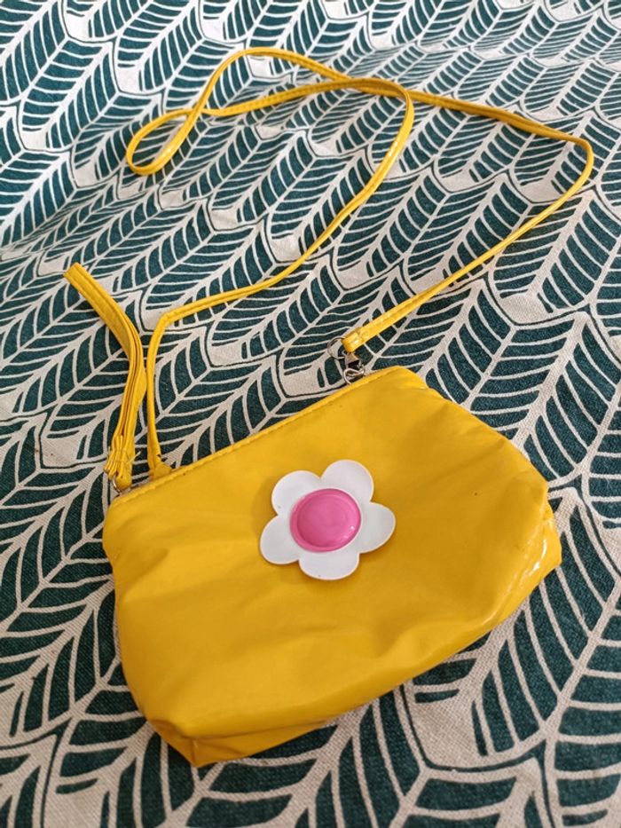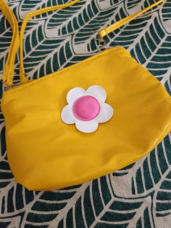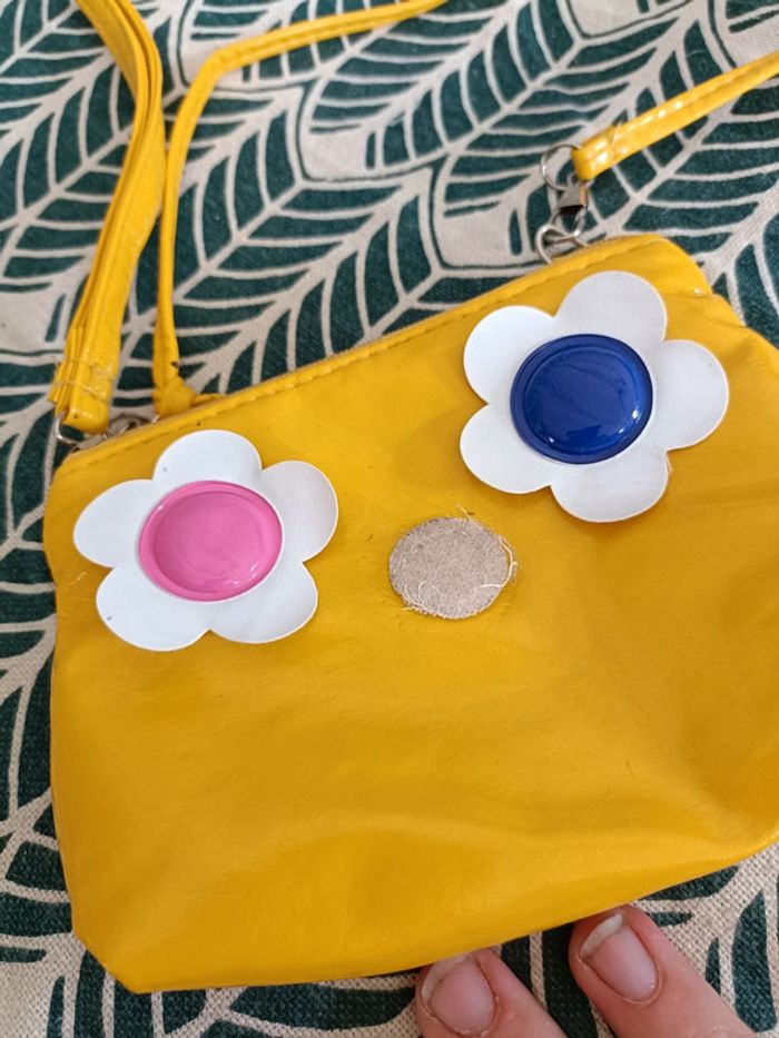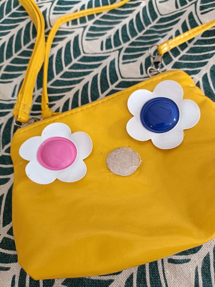 Petite pochette vintage Bandoulière En vinyle jaune Avec fleurs en velcro interchangeables (on peut choisir la fleur à accrocher sur le sac) Très bon état Vintage ➡️ #ursullabuffayaccessoires
