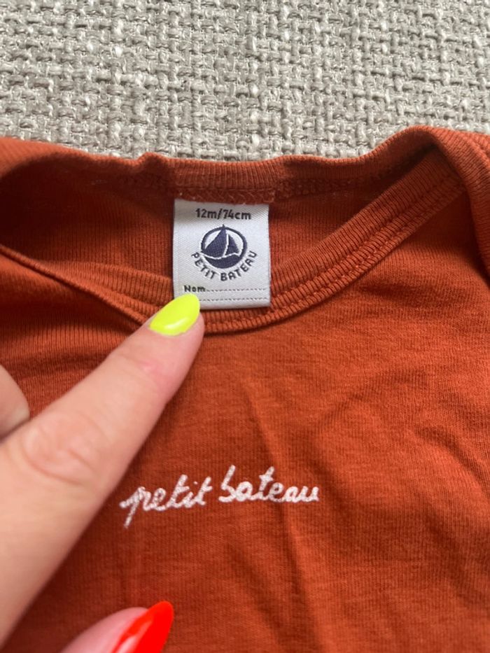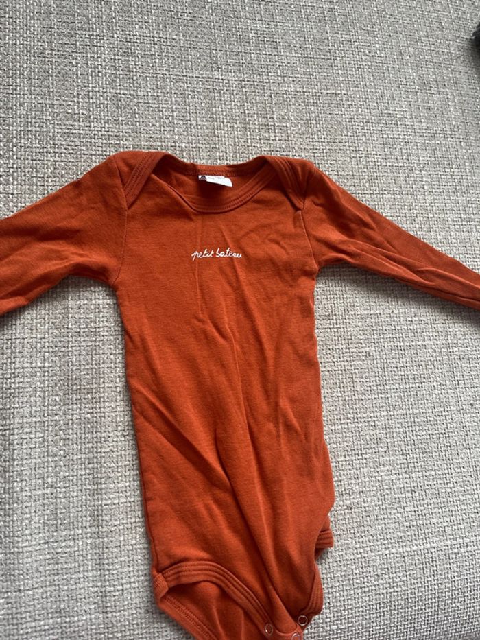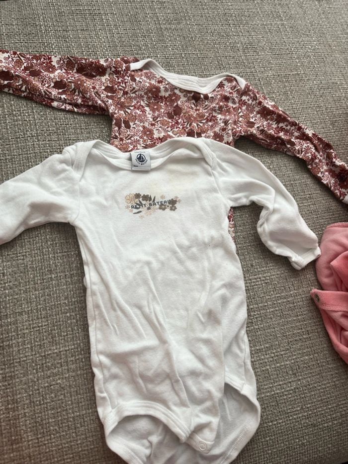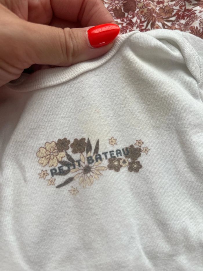 Lot de 3 body petit bateau Une légère tache sur le body blanc Taille 12 mois