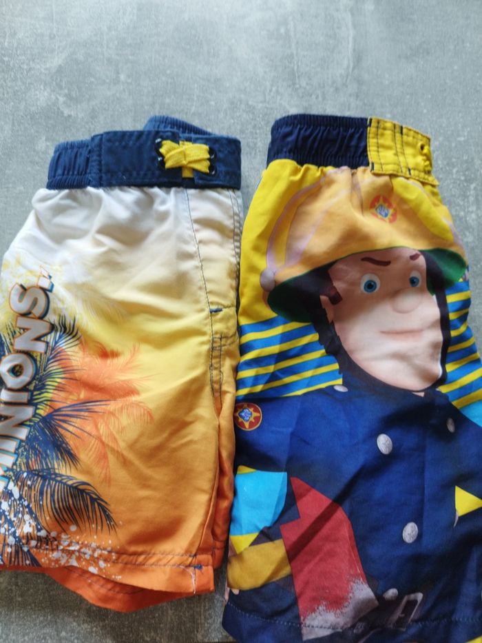 Vends 2 shorts de bain 1 sam le pompier 1 minion Très peu porté Taille 3 ans