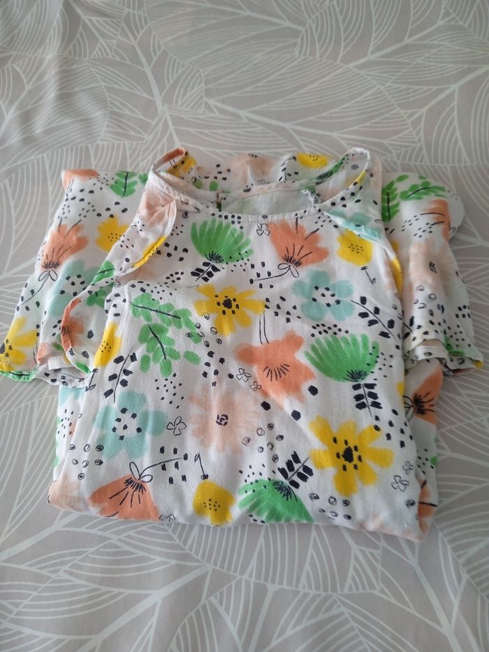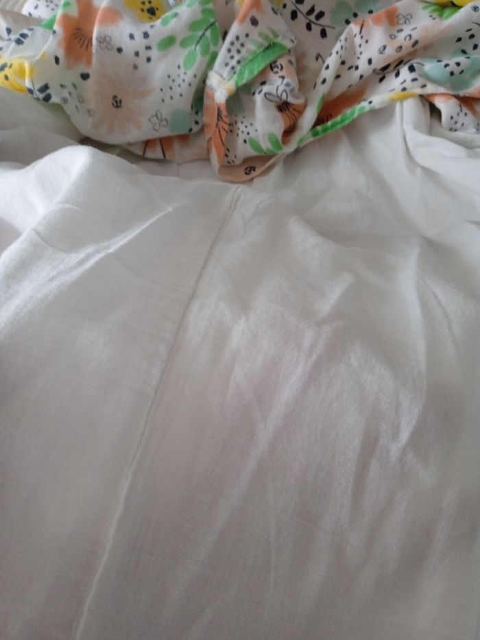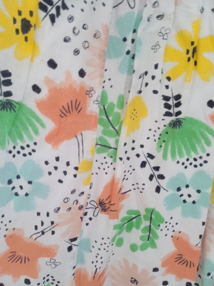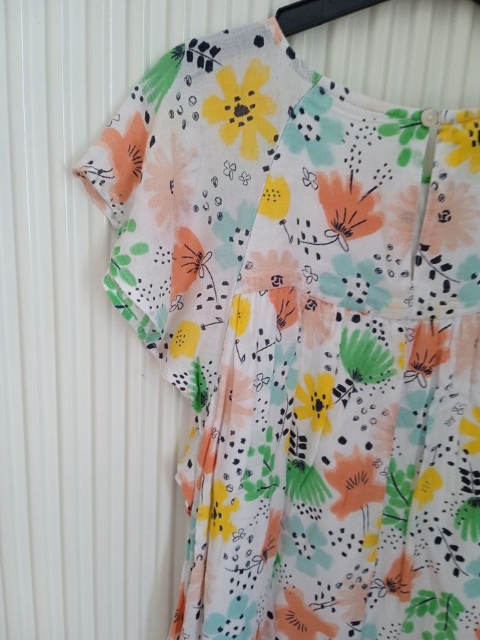 Robe de couleur blanche à motif fleur de plusieurs couleurs. Taille 12 ans. Marque Kiabi. Robe à manches courtes. Fermeture bouton au dos. Comprends une doublure. #fille12ansnade3033
