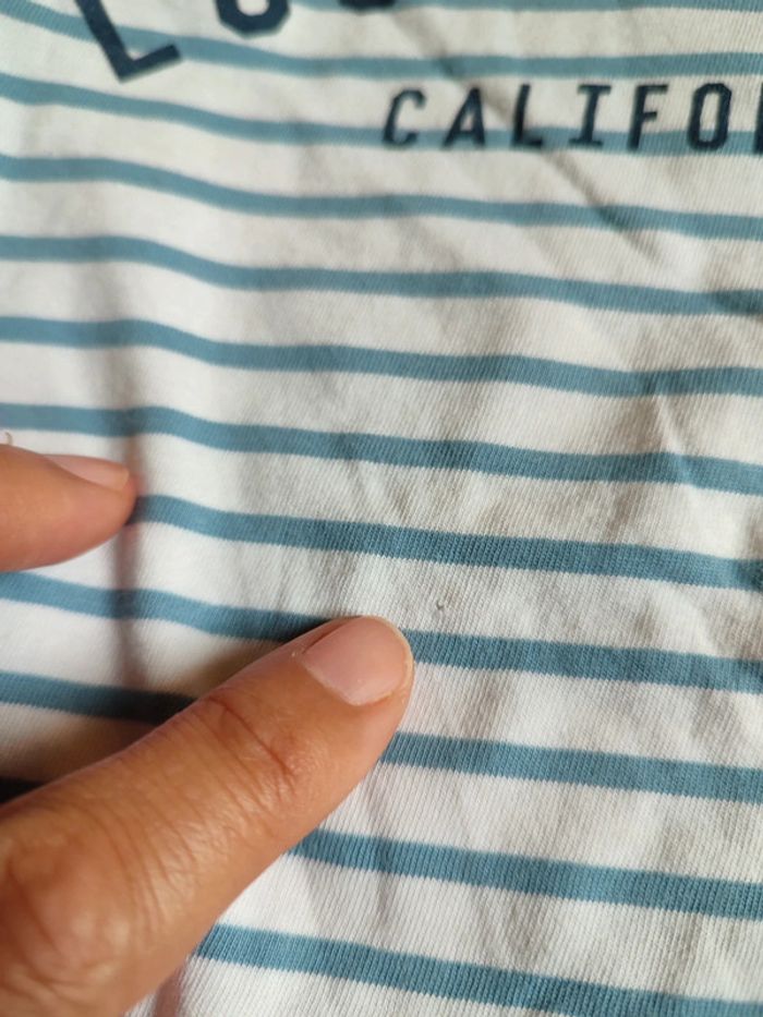 Pantalon en parfait état, porté 1 fois T-shirt manches courtes en parfait état mais avec un tout petit trou (voir photo) T-shirt manches longues neuf mais avec coloration rose qui devrait partir au lavage (voir photo)