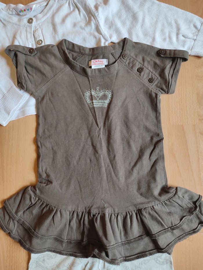 Lot tenue robe Neuve Okaou La Redoute + legging Miss Cutie en 18M + boléro Kidkanaï en 24M - photo numéro 2