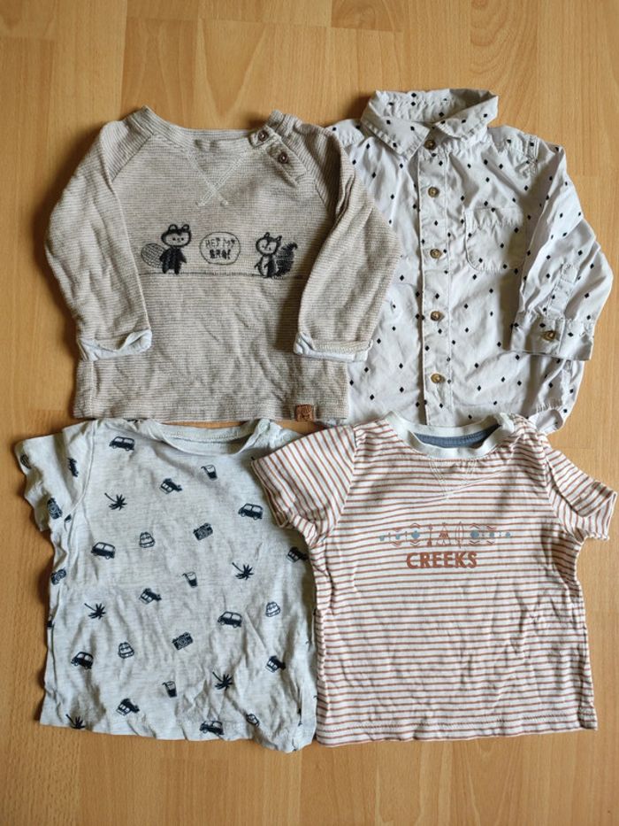Lot 2 t-shirts Creeks/Pat & Ripaton + 1 sweat + 1 chemise Kiabi en 6M - photo numéro 1
