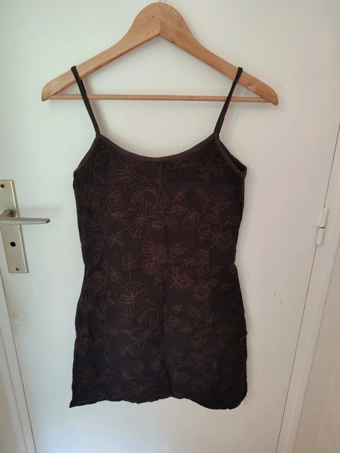 Robe/tunique marron foncée fleurs brodées en 38 - photo numéro 1
