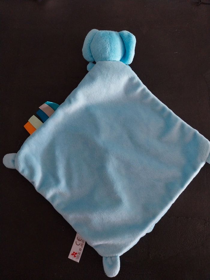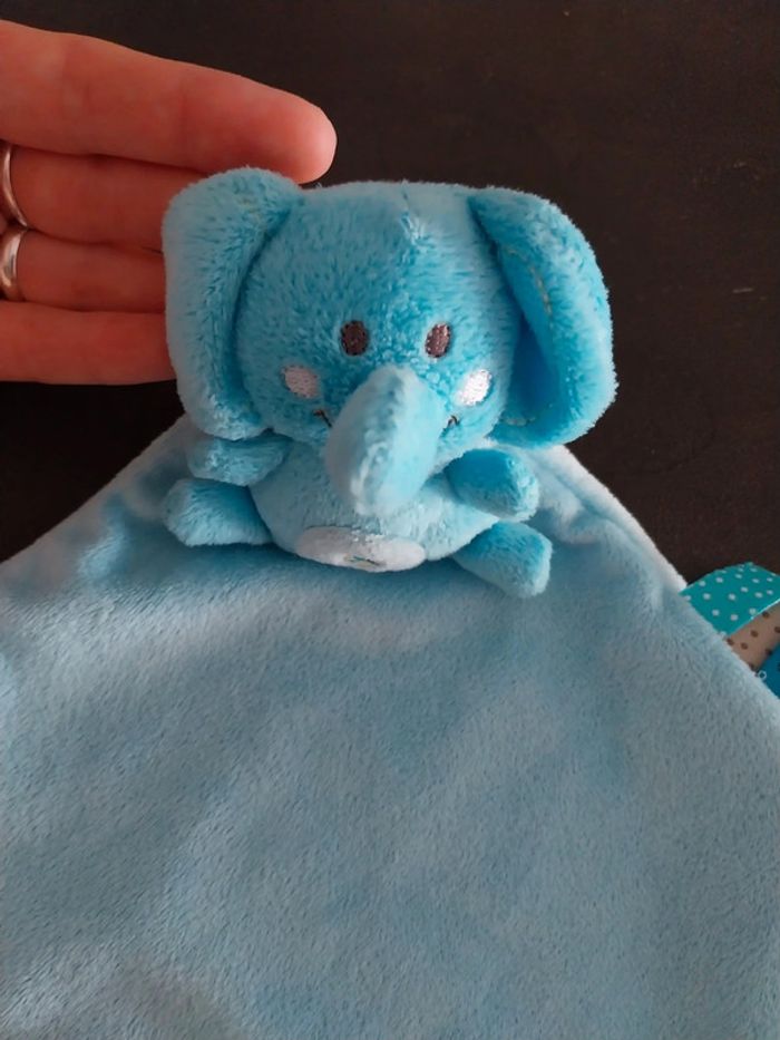 Doudou nicotoy elephant bleu Format losange Étiquettes sur le côté