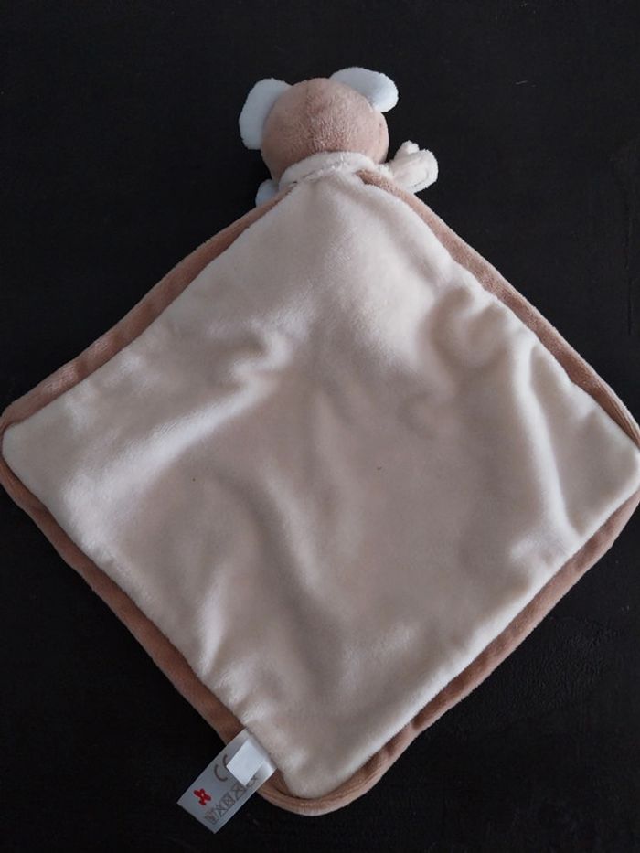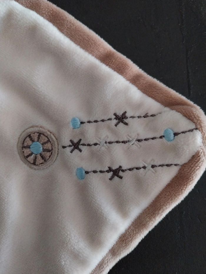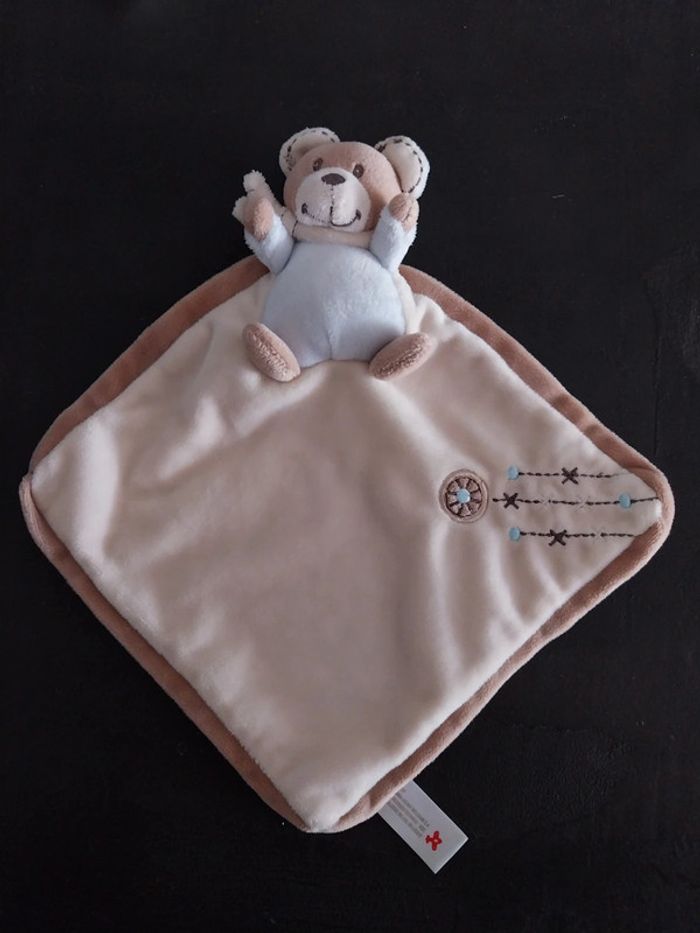 Doudou nicotoy ours cape beige bleu ciel et taupe Broderies
