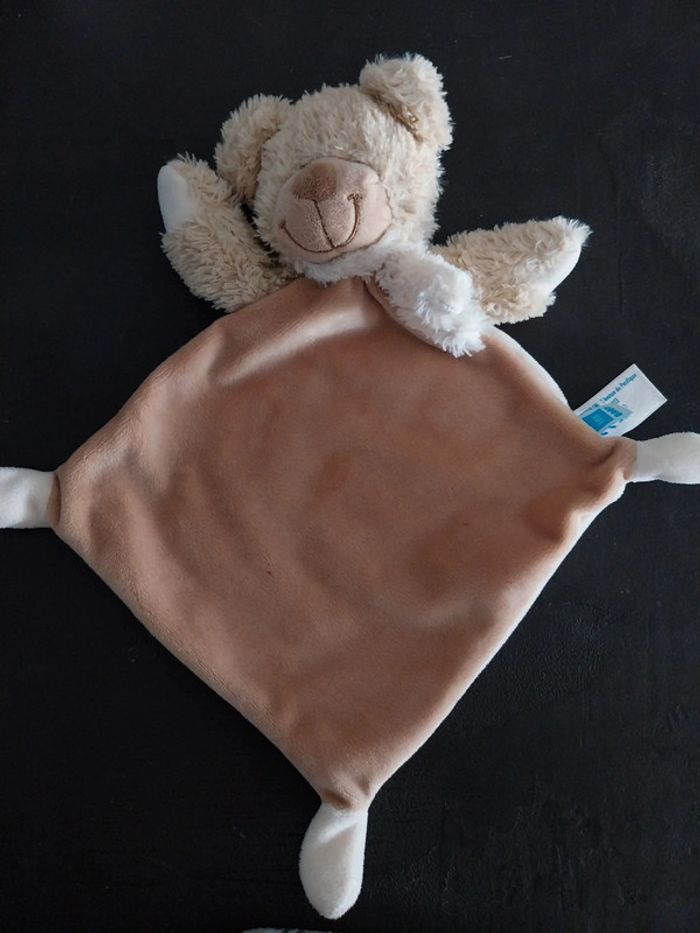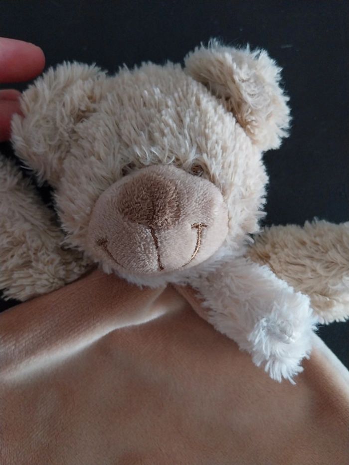 Doudou ours beige marron Tex baby Format losange 3 noeuds