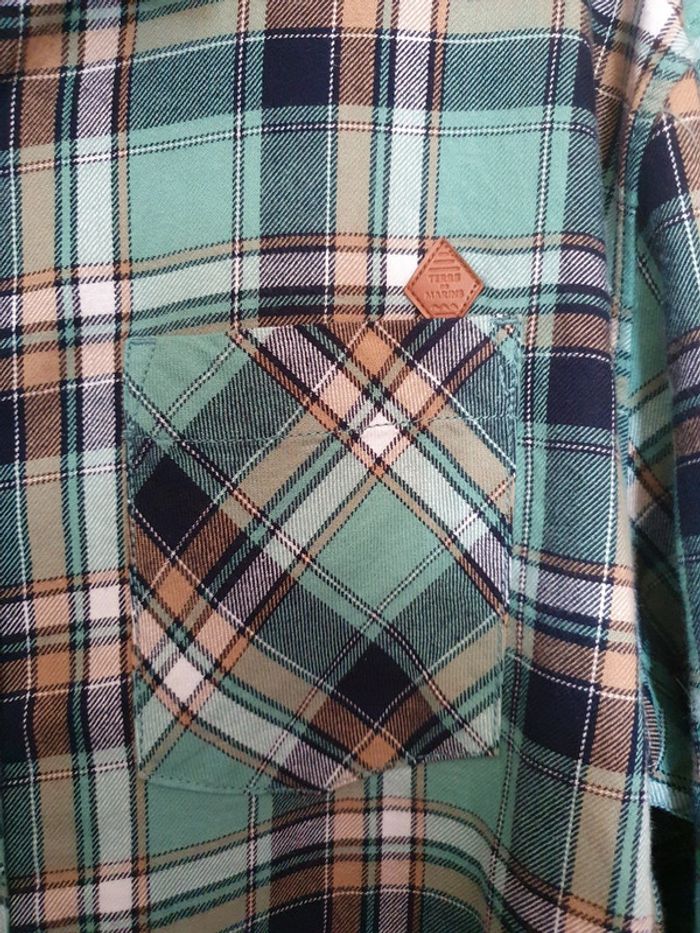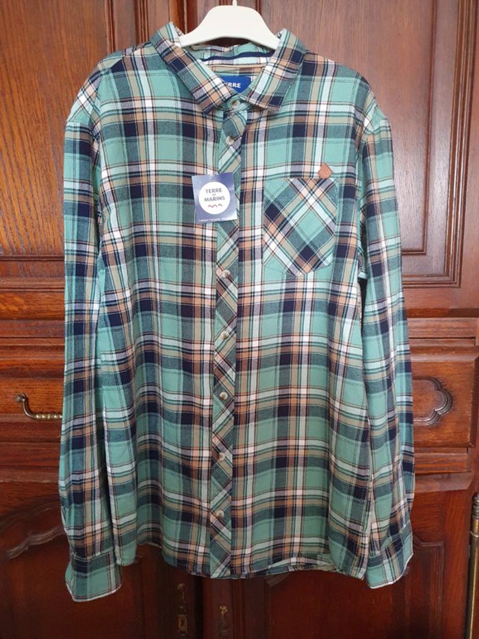Chemise manches longues Terre de marins taille M pli d aisance dos poignets boutonnés vert lagon fedra