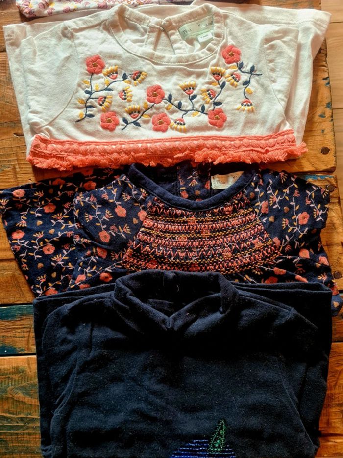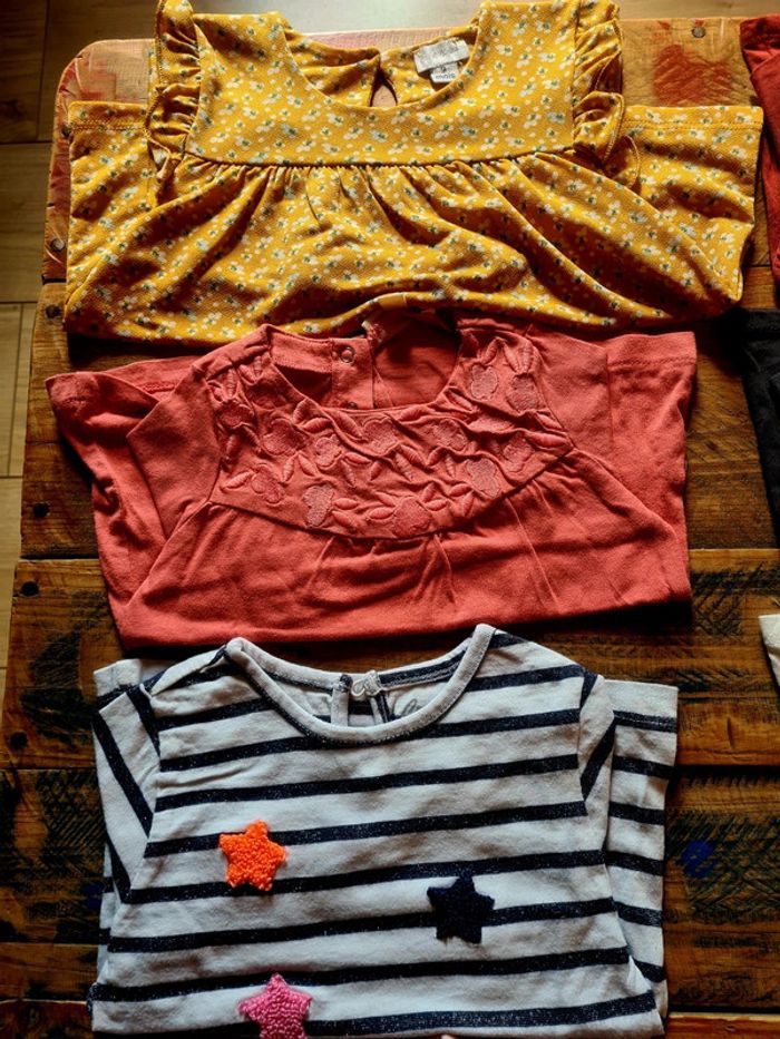 Lot de 16 tee shirts a manches longues pour bebe fille en taille 9 mois. Differentes marques. Possibilité de faire 2 lots. En bon état.