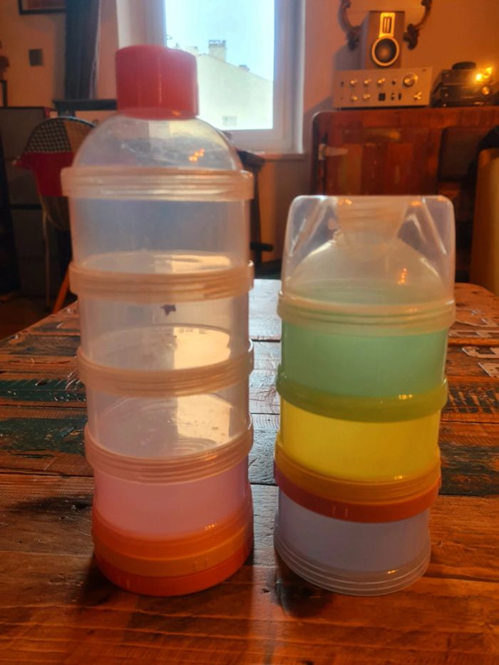 Lot de 2 boites doseuses pour les biberons des bébés. En parfait état.