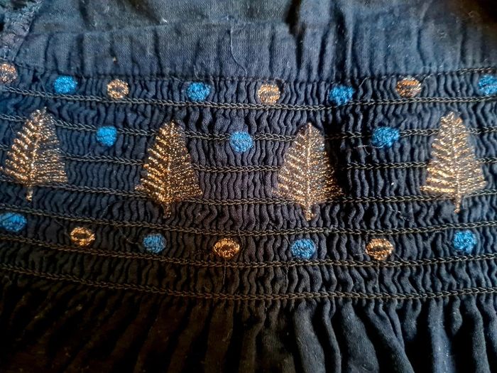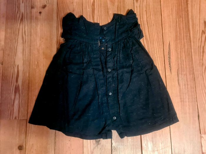 Jolie robe pour bebe fille de couleur noire a motifs sapins. De la marque dpam en taille 12 mois soit 74 cm. En tres bon état.