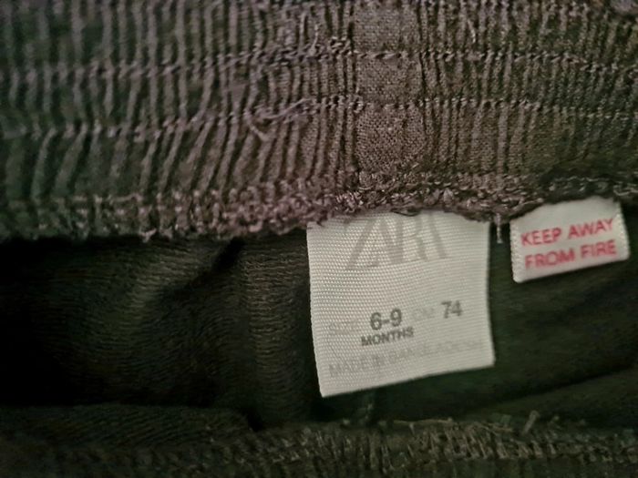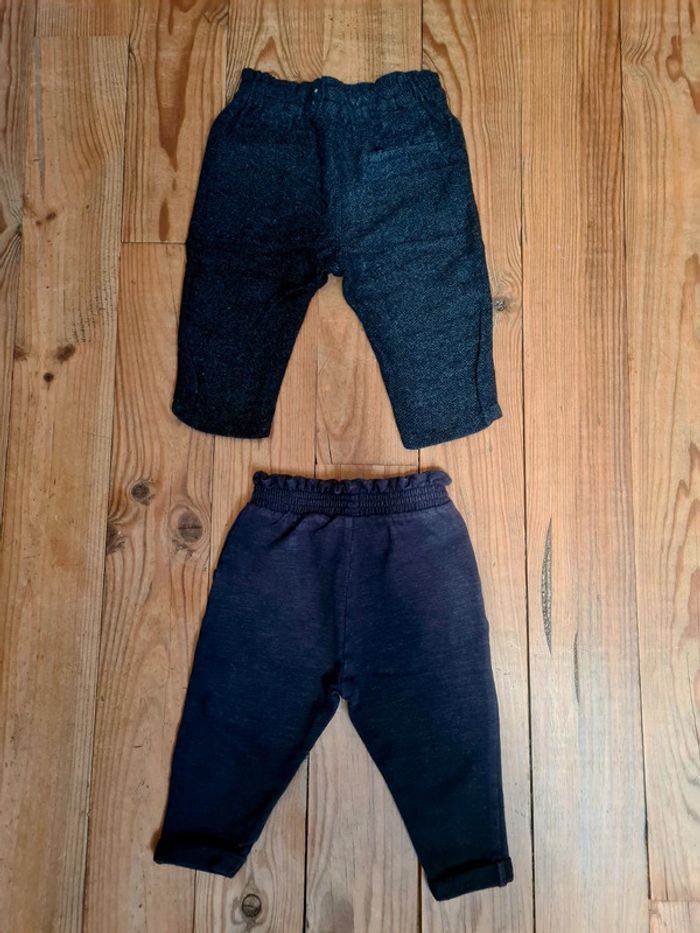 Lot de 2 pantalons de la marque zara. L un est noir , de forme jogging tres confortable en taille 74 cm et l autre est gris chiné en taille 80 cm. En bon état.