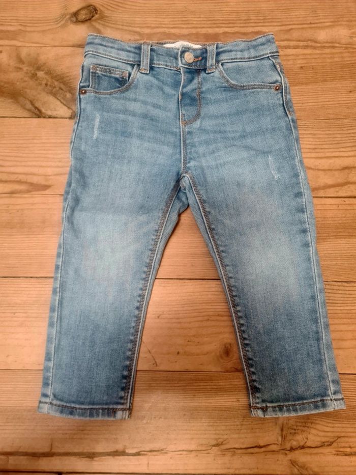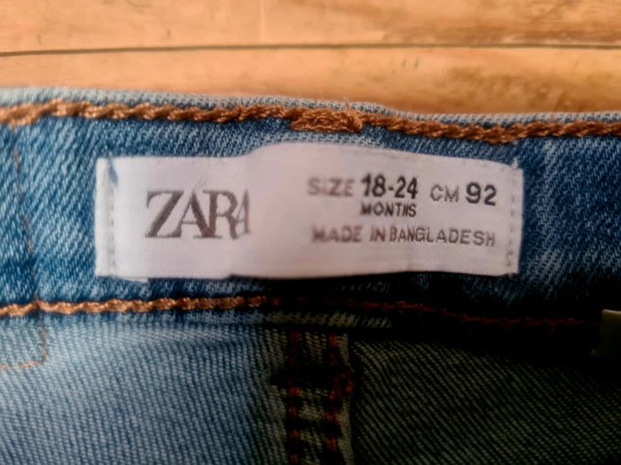 Joli jean en denim bleu pour bebe fille de la marque zara. De taille 92 cm. En parfait état.